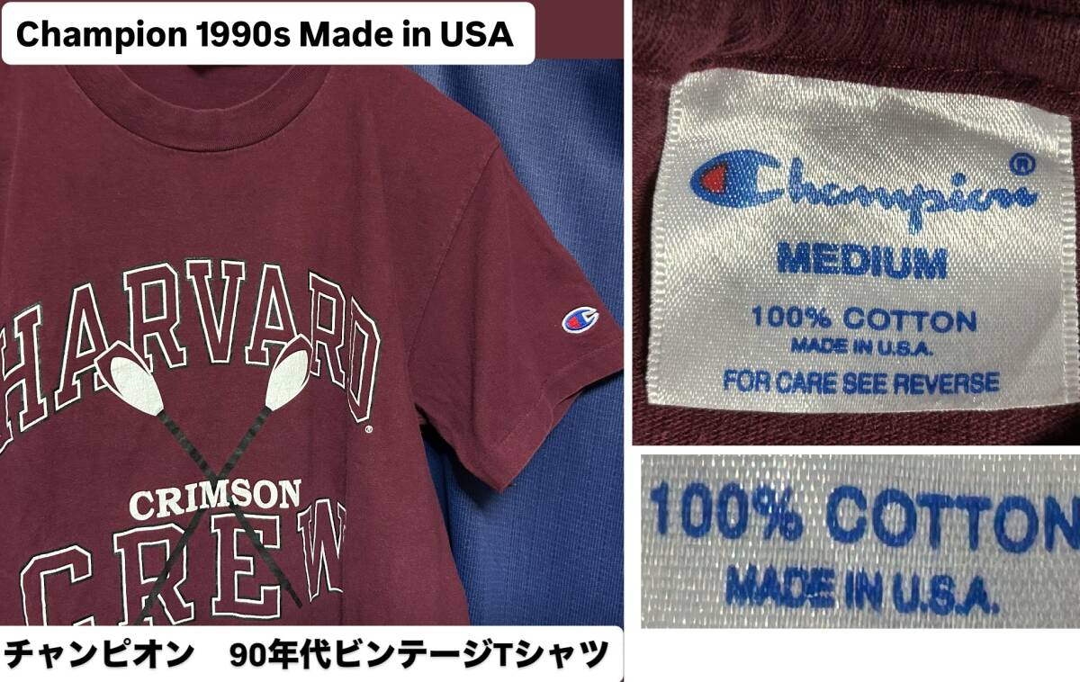 1990年代ヴィンテージTシャツ★チャンピオン★アメリカ製Мサイズ★ビンテージ古着★ハーバード大学HARVARD CRIMSON CREW 90s VINTAGE