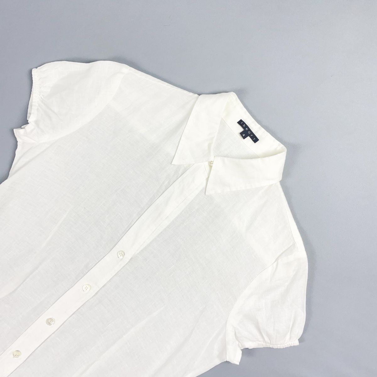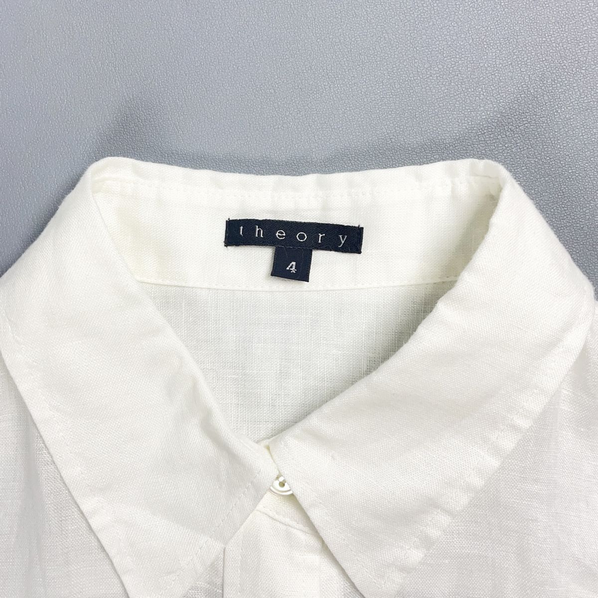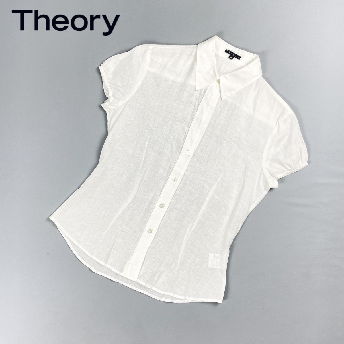 美品 theory セオリー 半袖リネンブラウス パフスリーブ 麻100% レディース 白 ホワイト サイズ4*ED17