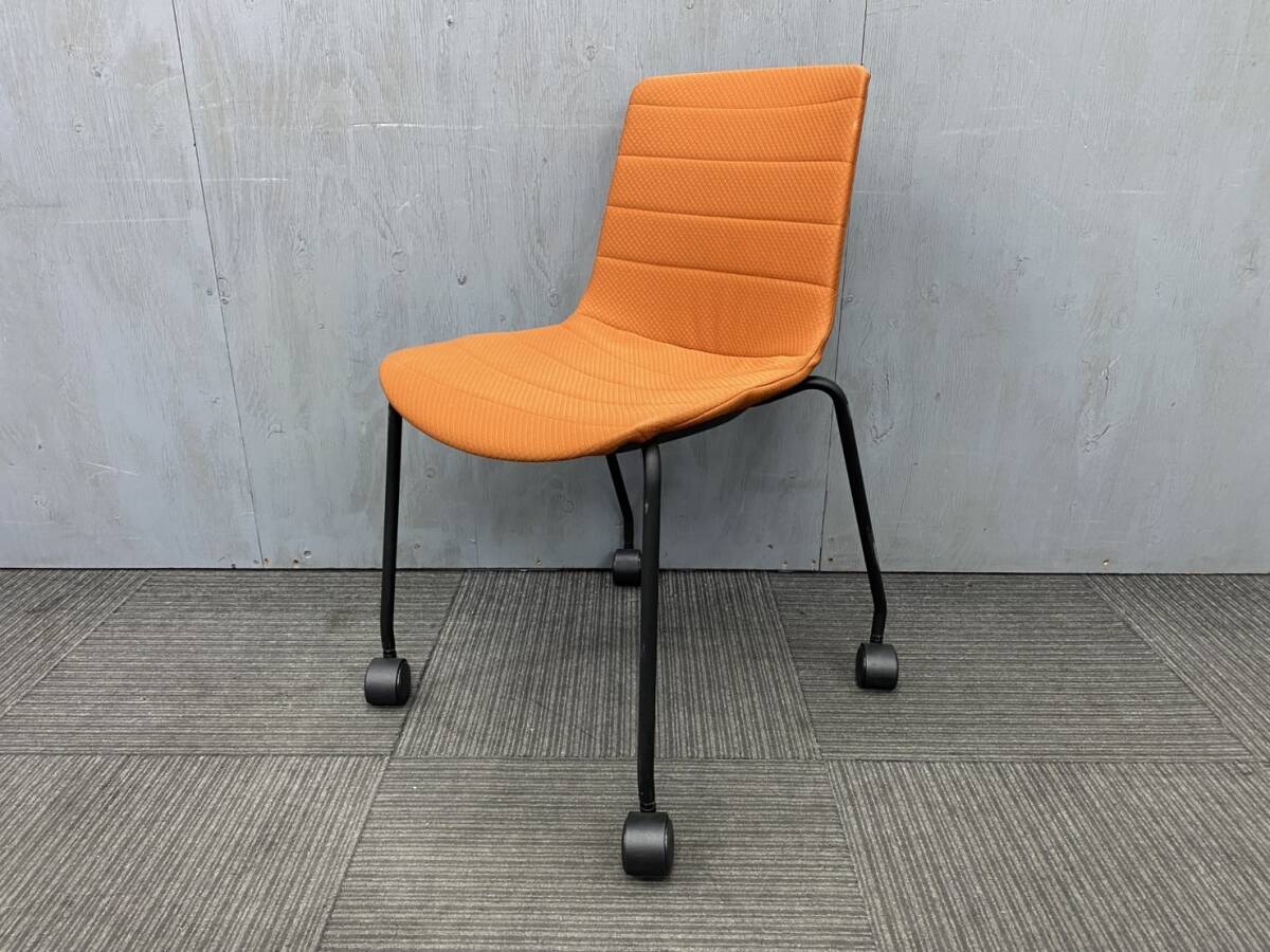◆管2128◆自社便対応地域あり◆アスクル◆キャスター付きスタッキングチェアー 4脚セット◆会議 ミーティング オフィス◆オレンジ系