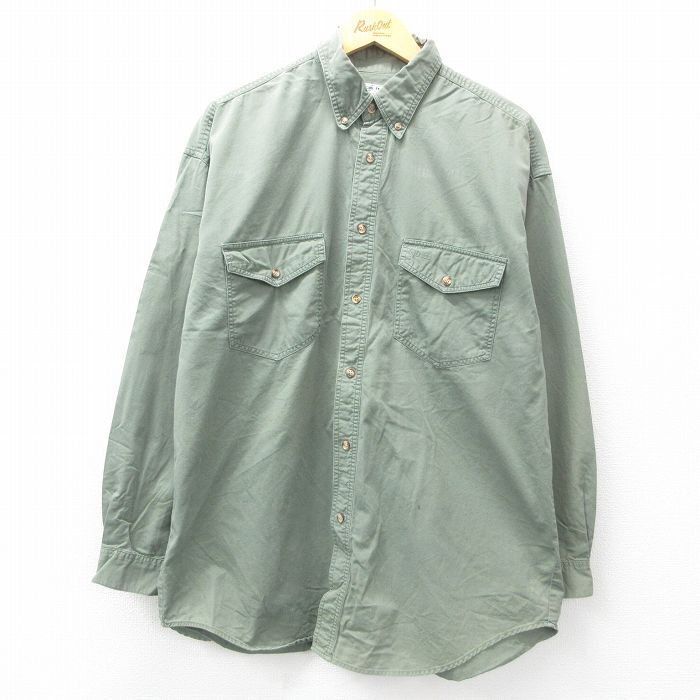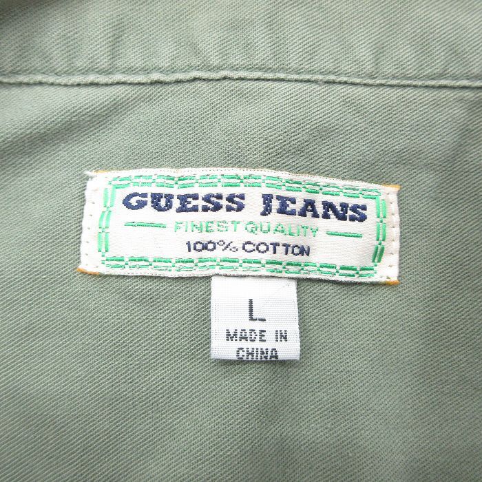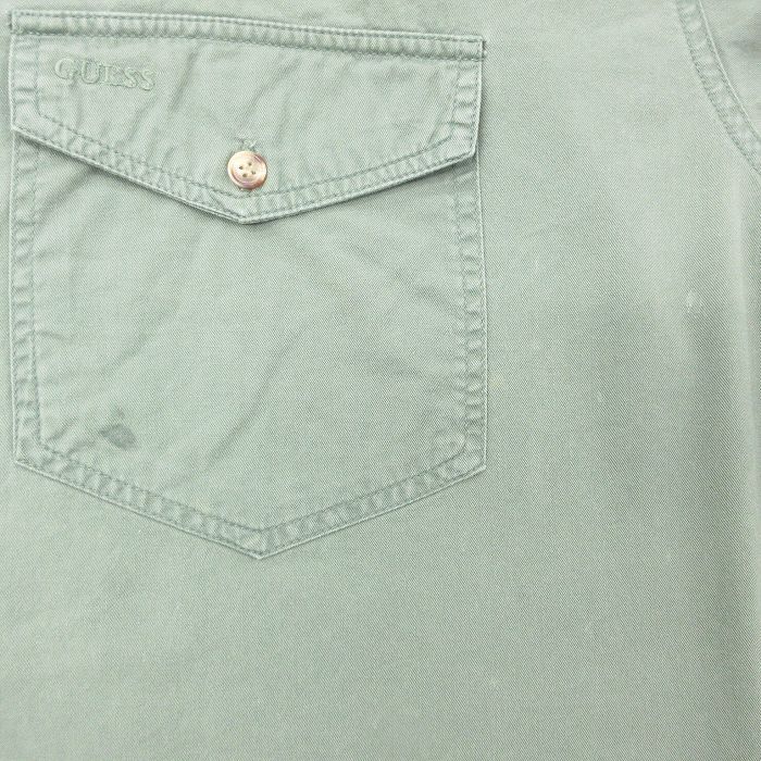 【商品名】 XL★古着 ゲス GUESS 長袖 ブランド シャツ メンズ 大きいサイズ コットン ボタンダウン 薄緑