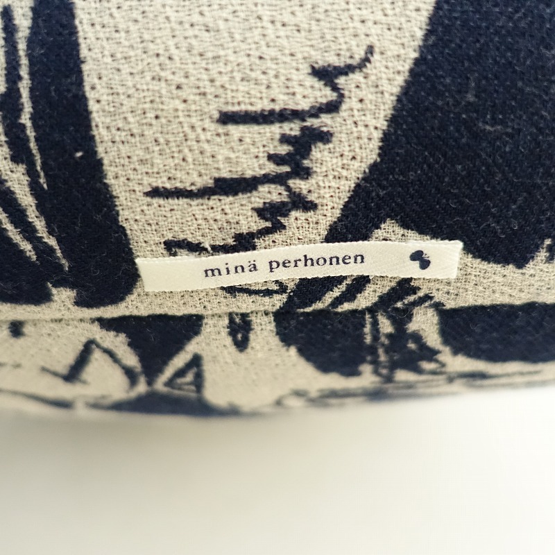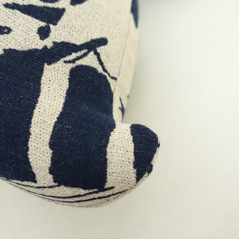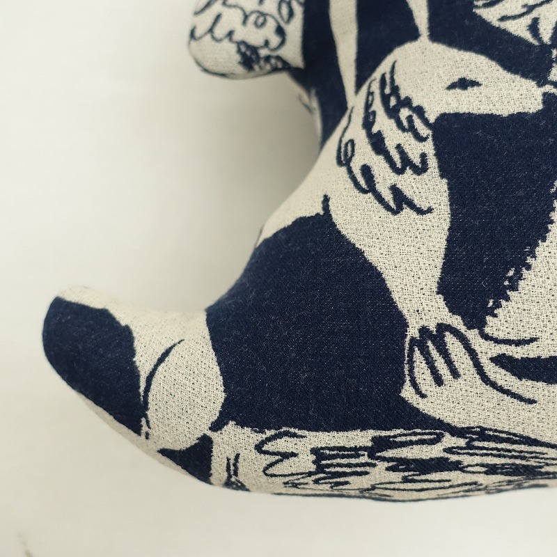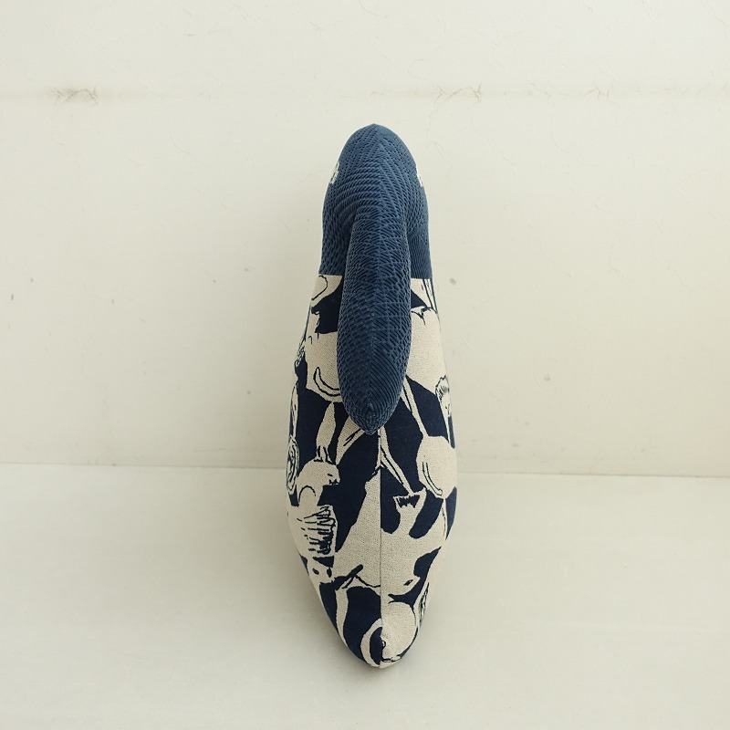 mina perhonenのlife puzzle うさぎクッションです。ボディ部分はネイビーベースにアイボリーでlife puzzleのテキスタイルが施された生地で、お顔はくすみブルーのland puzzleの別地に切り替えられています。 目や鼻の刺しゅうはアイボリーで施されており、定価(メーカー希望小売価格)22,000円の商品です。 |