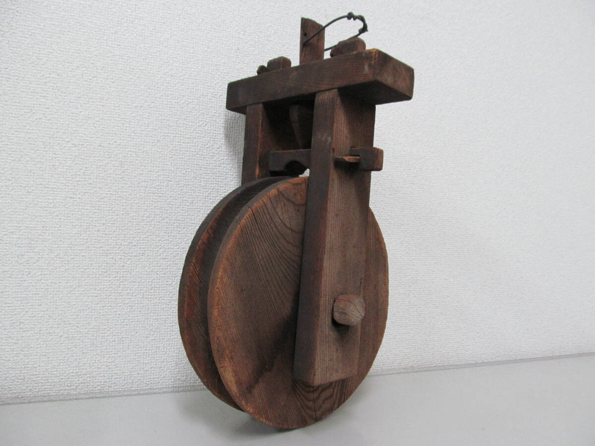 つるべ 滑車 木製 古民具 古道具 時代物 インテリア オブジェ
