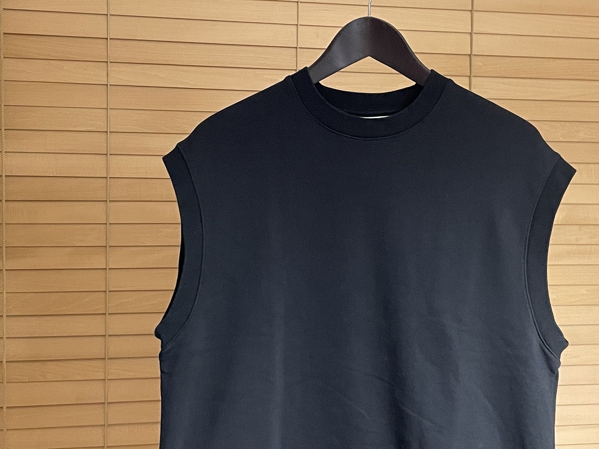 裏毛の肌触りの良さはそのままに、目を詰め適度なハリを出したベストです。