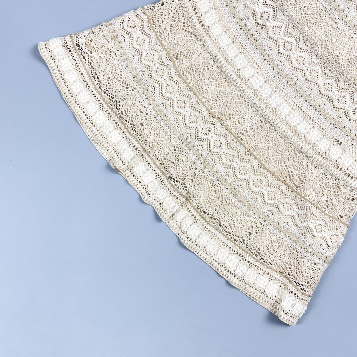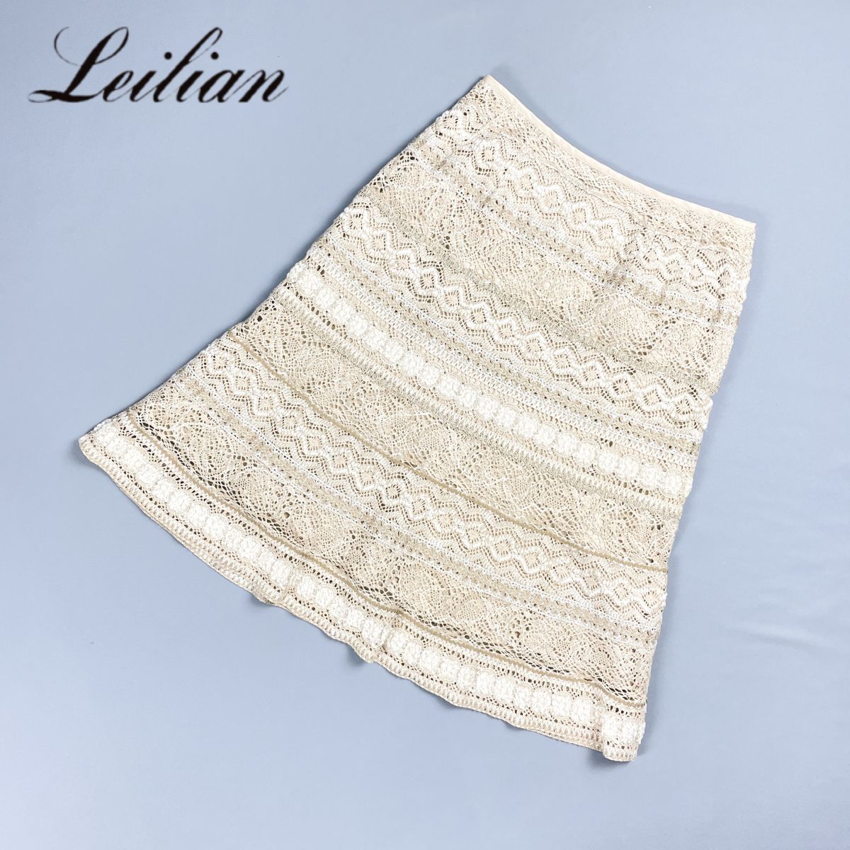 美品 Leilian レリアン ラメレーススカート フレア 台形 裏地付 ミモレ丈 ベージュ アイボリー 生成り サイズ11*ED5