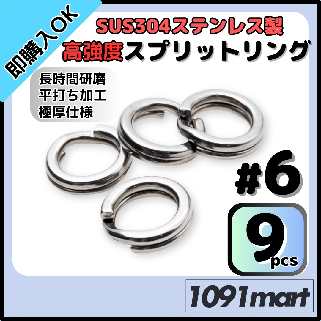 SUS304 ステンレス製 強力 平打ち スプリットリング #6 9個セット ソルト対応品 長時間研磨【ミニレター】