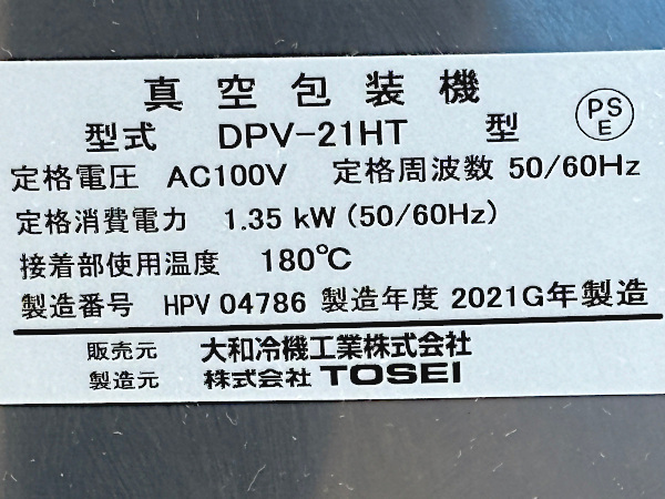 2021年製 美品 大和冷機工業 真空梱包機 DPV-21HT 卓上型 真空パック シーラー TOSEI | |||||||||||||||||||