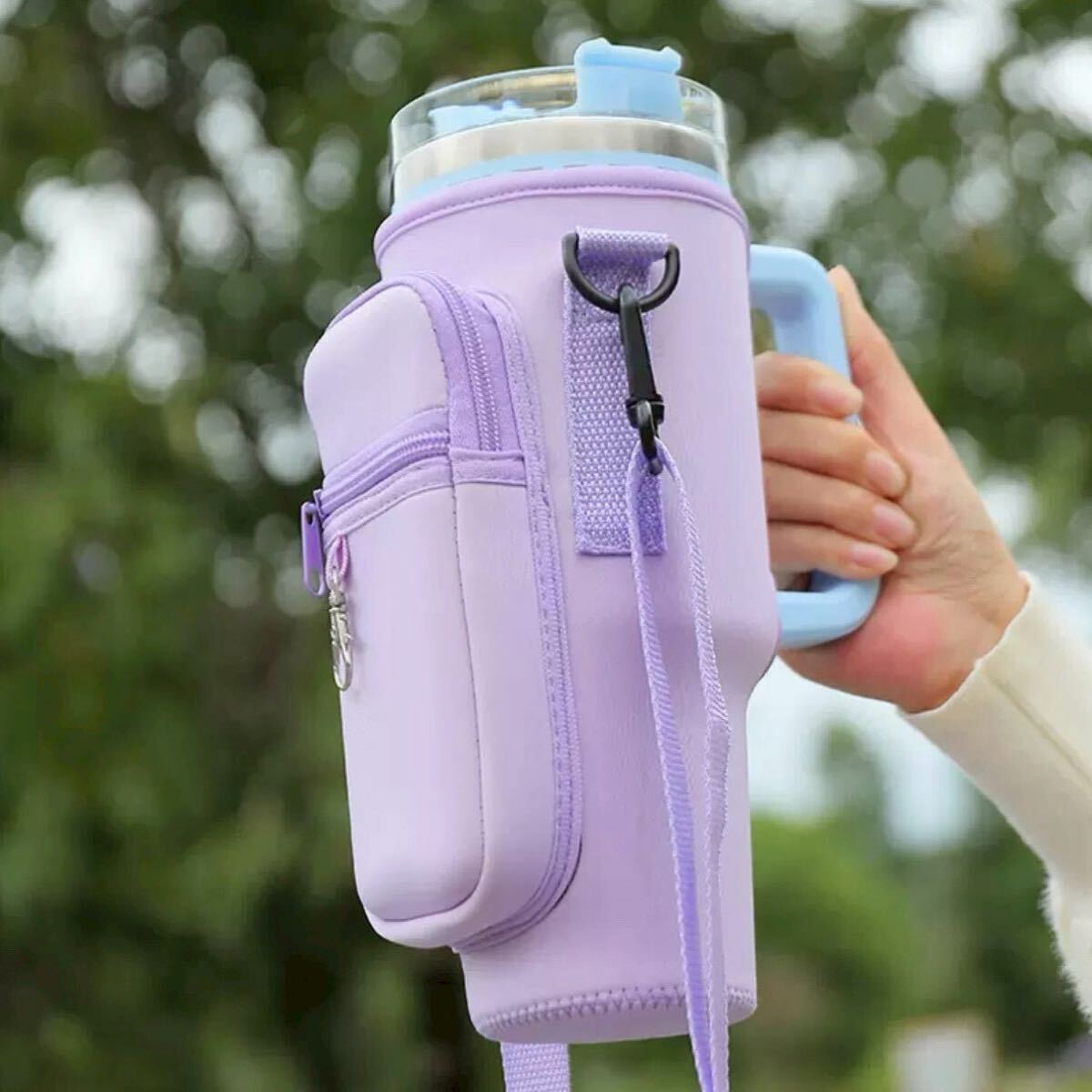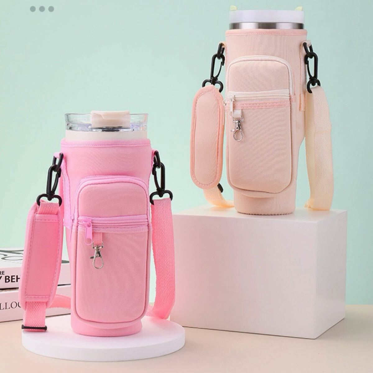 ペットボトルや水筒(500ml〜700ml対応)がスッポリ入るサイズ。