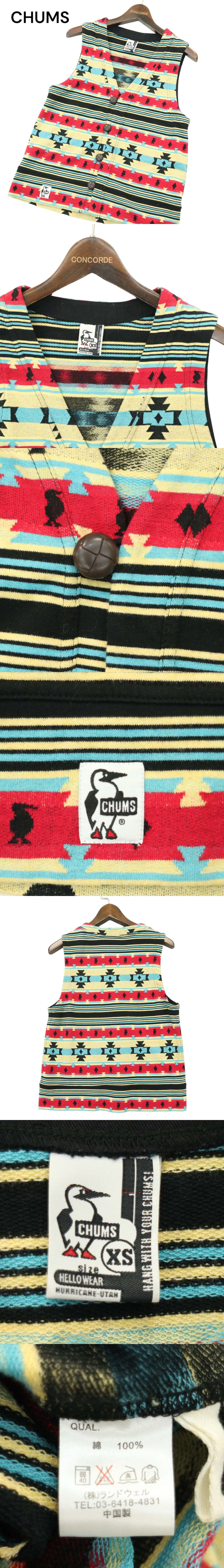 美品★ CHUMS チャムス 通年 ブービーバード ネイティブ ボーダー★ Vネック ベスト Sz.XS メンズ