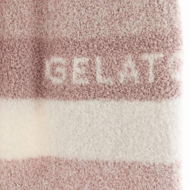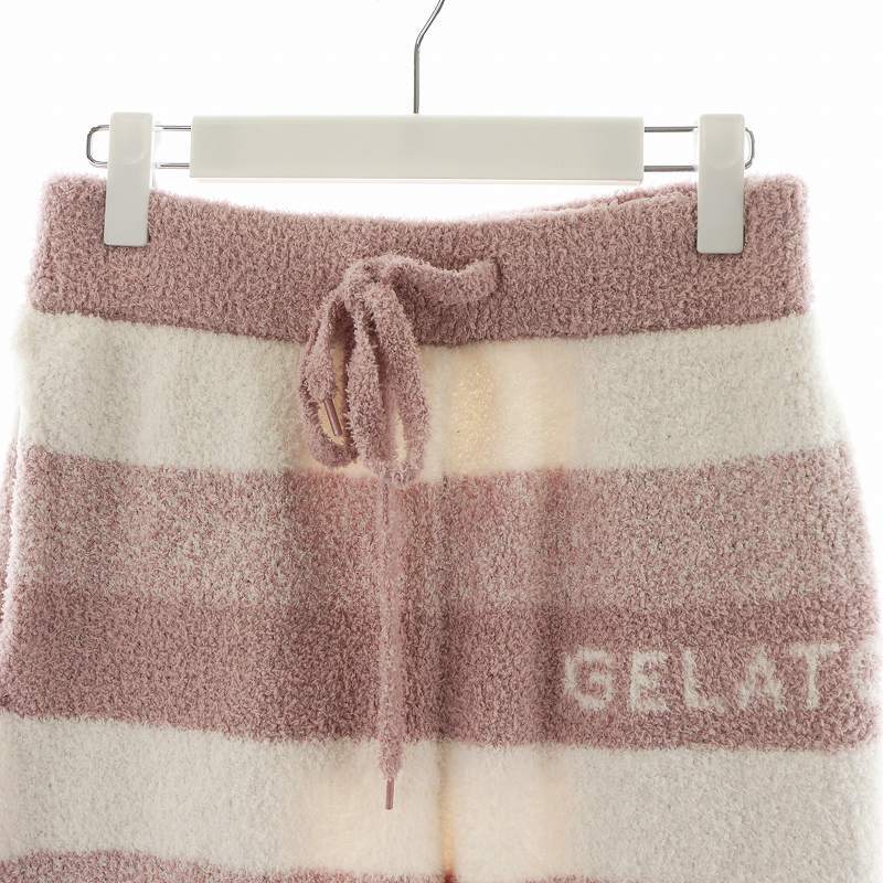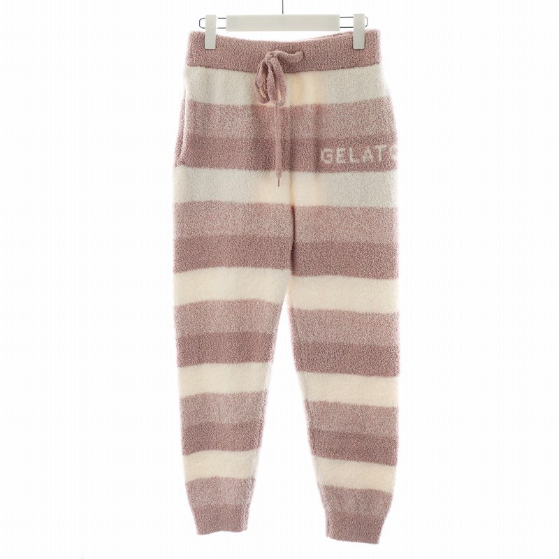 未使用品 ジェラートピケ gelato pique 22AW べビモコメランジボーダーロングパンツ ジョガーパンツ F ピンク 白