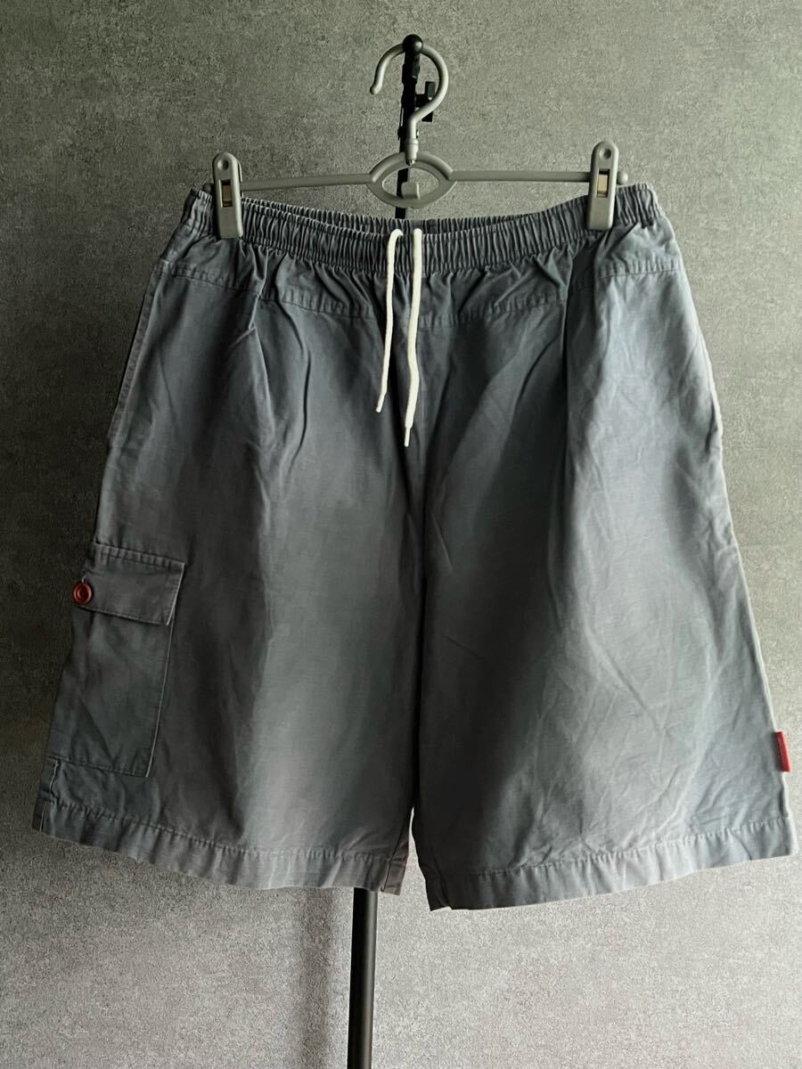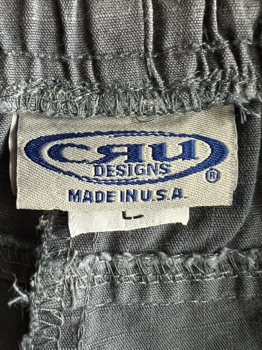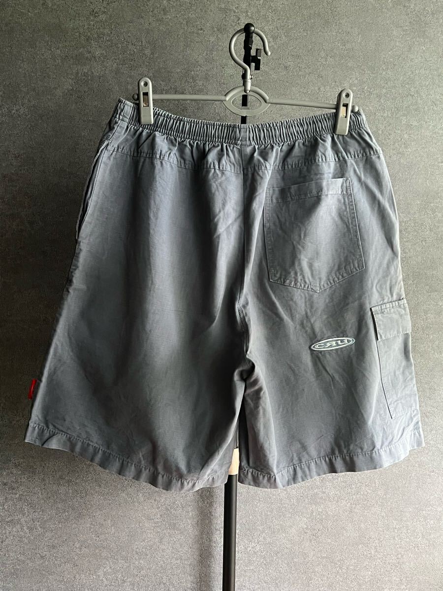 入手困難CRU クルー MADE IN U.S.A . カーゴハーフパンツ ビンテージ 80,90年 サーフ系 アメリカ製 カリフォルニア ブルーグレー オーバーサイズ コットン100% 超美品