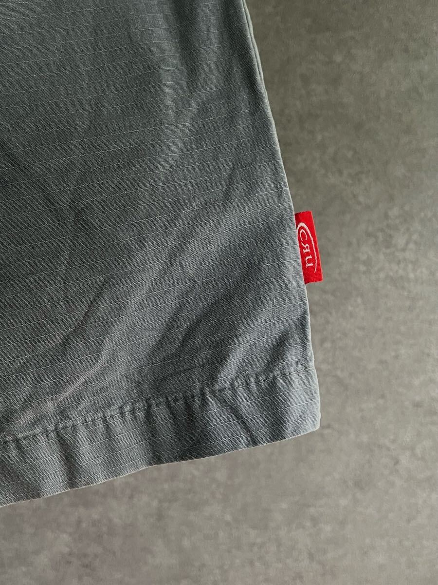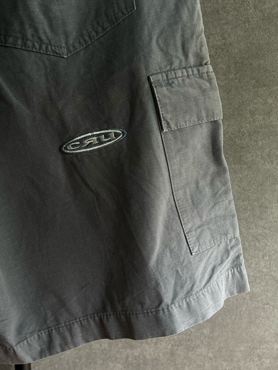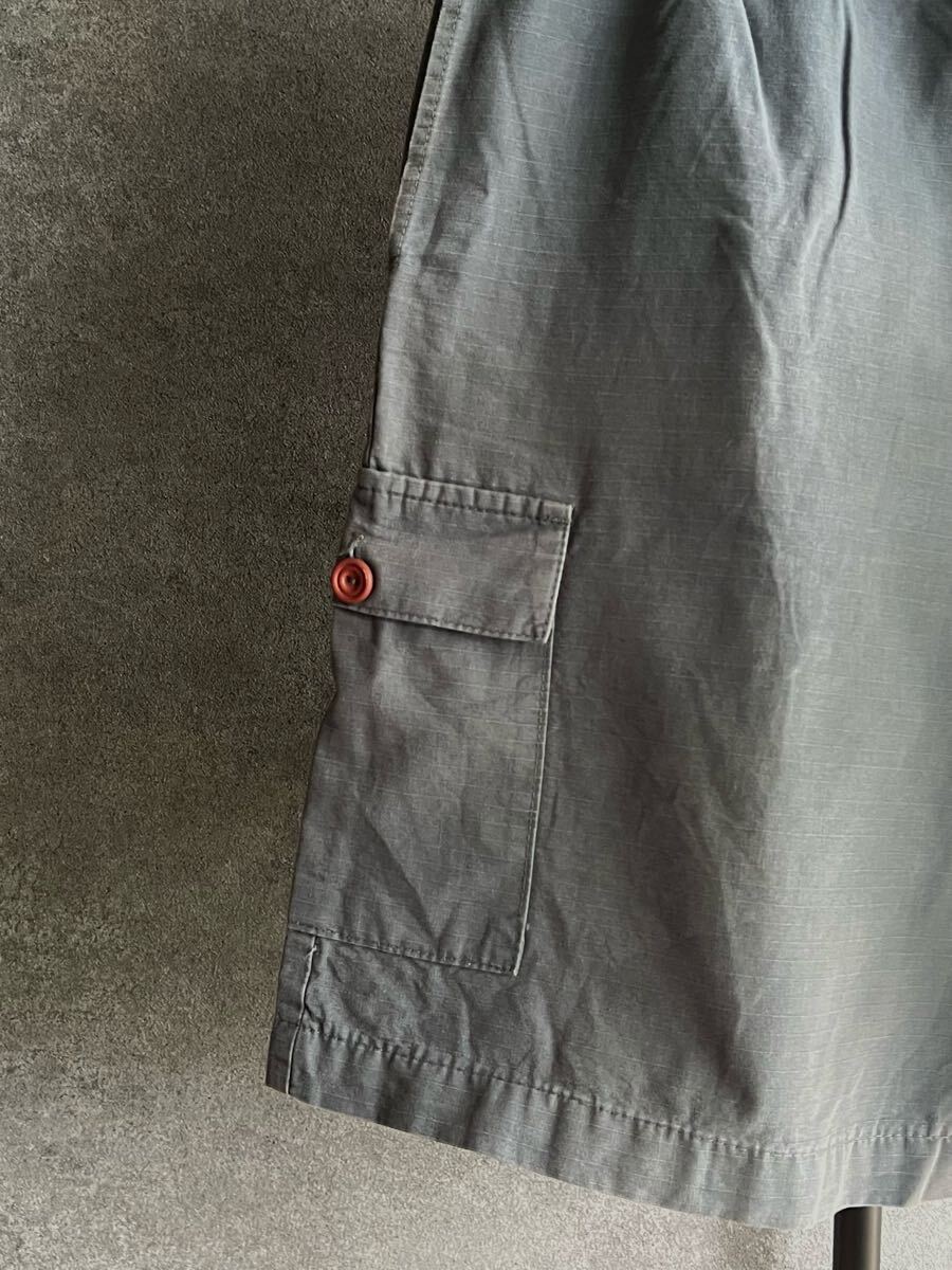 入手困難CRU クルー MADE IN U.S.A . カーゴハーフパンツ ビンテージ 80,90年 サーフ系 アメリカ製 カリフォルニア ブルーグレー オーバーサイズ コットン100% 超美品