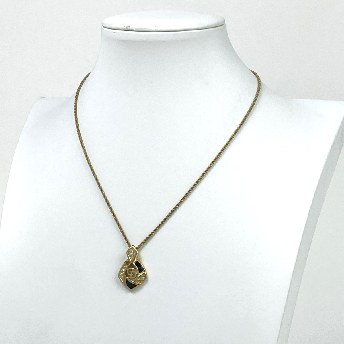 | クリスチャンディオール Christian Dior ロゴ ラインストーン ネックレス CD ペンダント ネックレス GP ゴールド ブラック レディース 【中古】 |