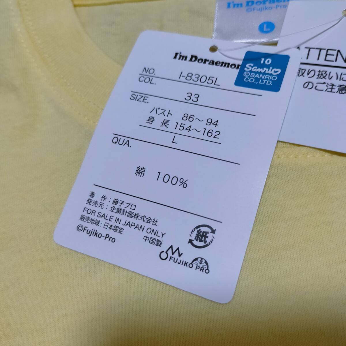 【Lサイズ】ドラミちゃん ドラえもん 半袖Tシャツ 丸首 黄色