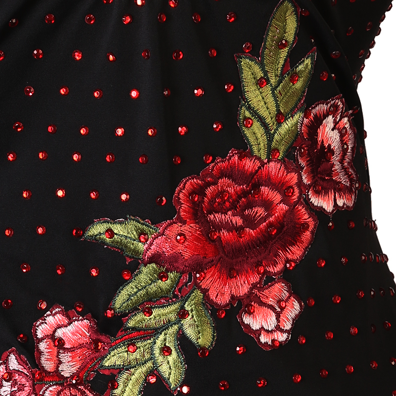 新作 レディース社交ダンス衣装 モダンダンス練習ドレスワンピース サイズ調整可 グラデーション系 黒赤 花柄飾り サイズS~XXL