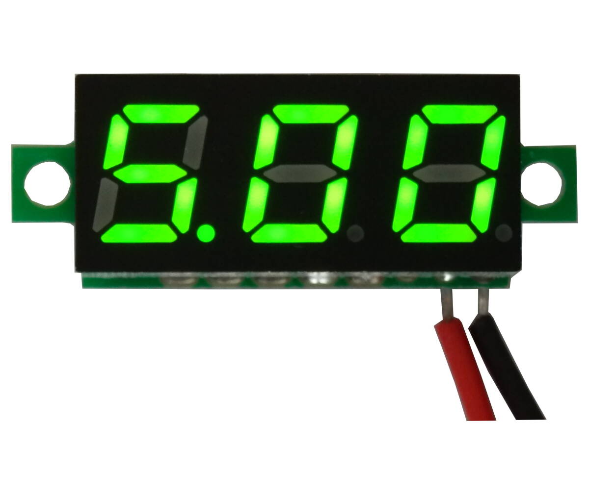 ■ ミニデジタル直流電圧計 緑 DC 3.5V-30V【簡単2線式/埋め込み型/校正トリマ】送料140円~