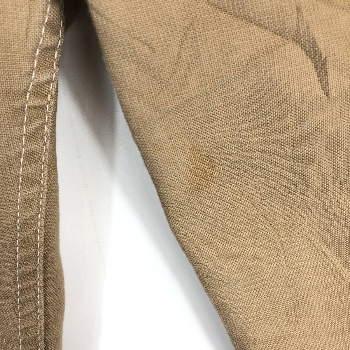 状態…生地にダメージや汚れなどの使用感があります。ヒップ部分に、丸いワッペンの縫い付け跡があります。