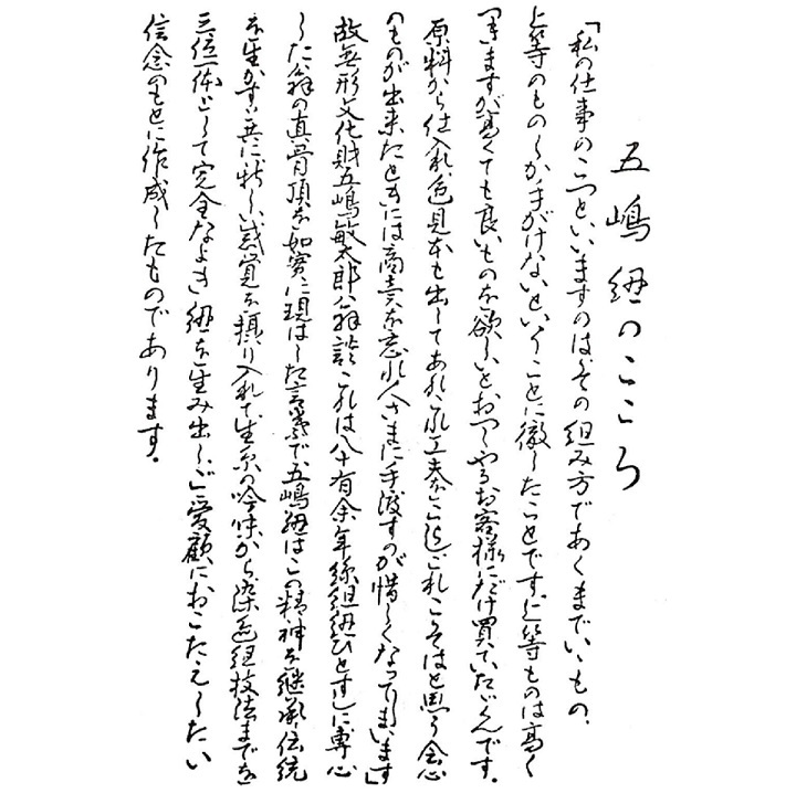 素材にこだわり、熟練の職人さんが丁寧に編み込んでいるため、しなやかな手触りで紐を締めるときのきゅっと絹鳴りの音が心地よく響きます。