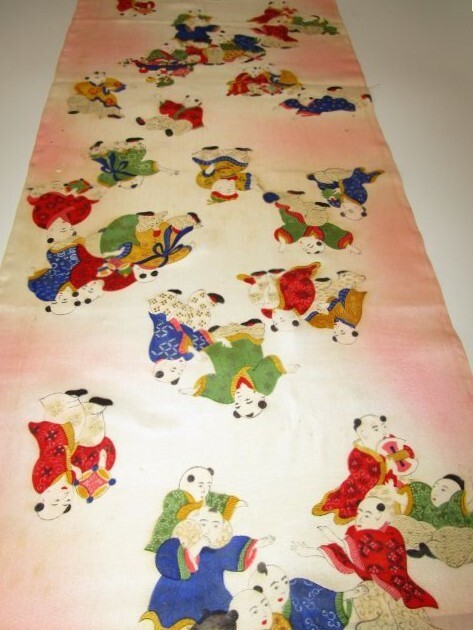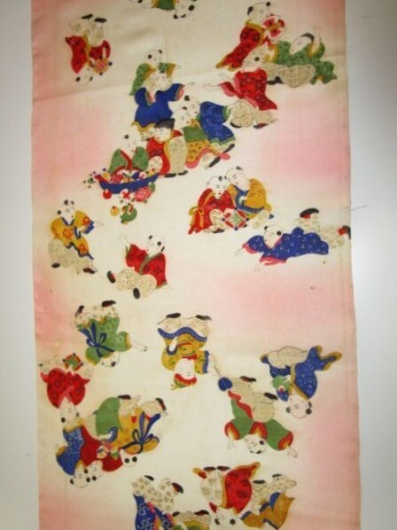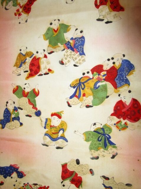 F-27★かわいい唐子がたくさん*正絹*羽裏*古布はぎれ★市松人形/一閑張り/文化人形