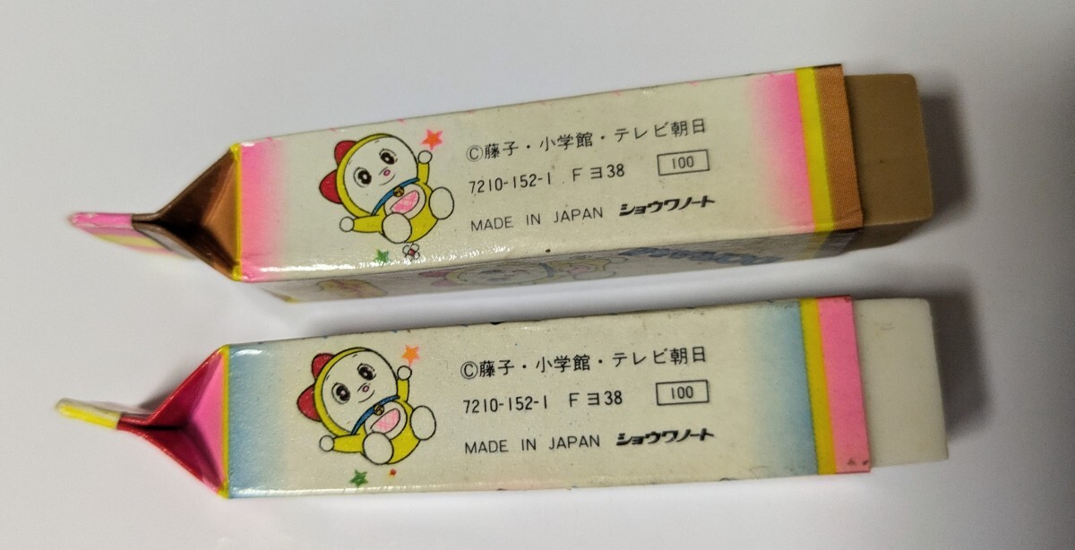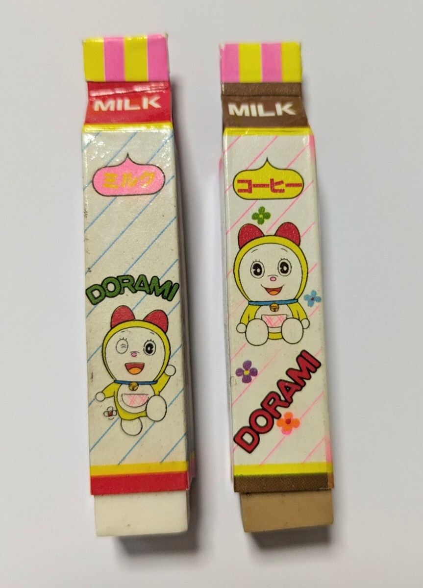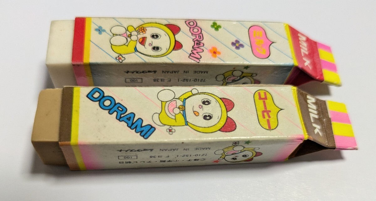 ★【絶版】昭和レトロ ドラえもん ドラミちゃん 消しゴム ミルク/コーヒー 2種【ショウワノート製:日本製:新品】