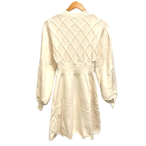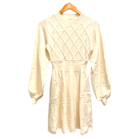 リップサービス LIP SERVICE ワンピース ニット パフスリーブ フレア 膝丈 長袖 F 白 アイボリー レディース