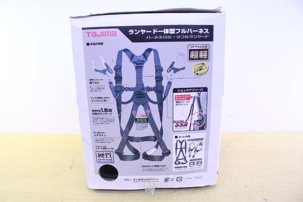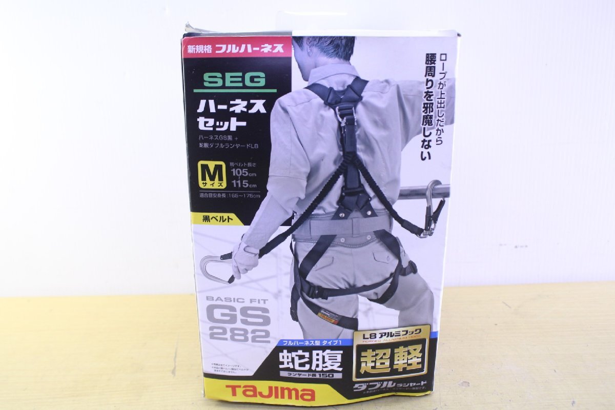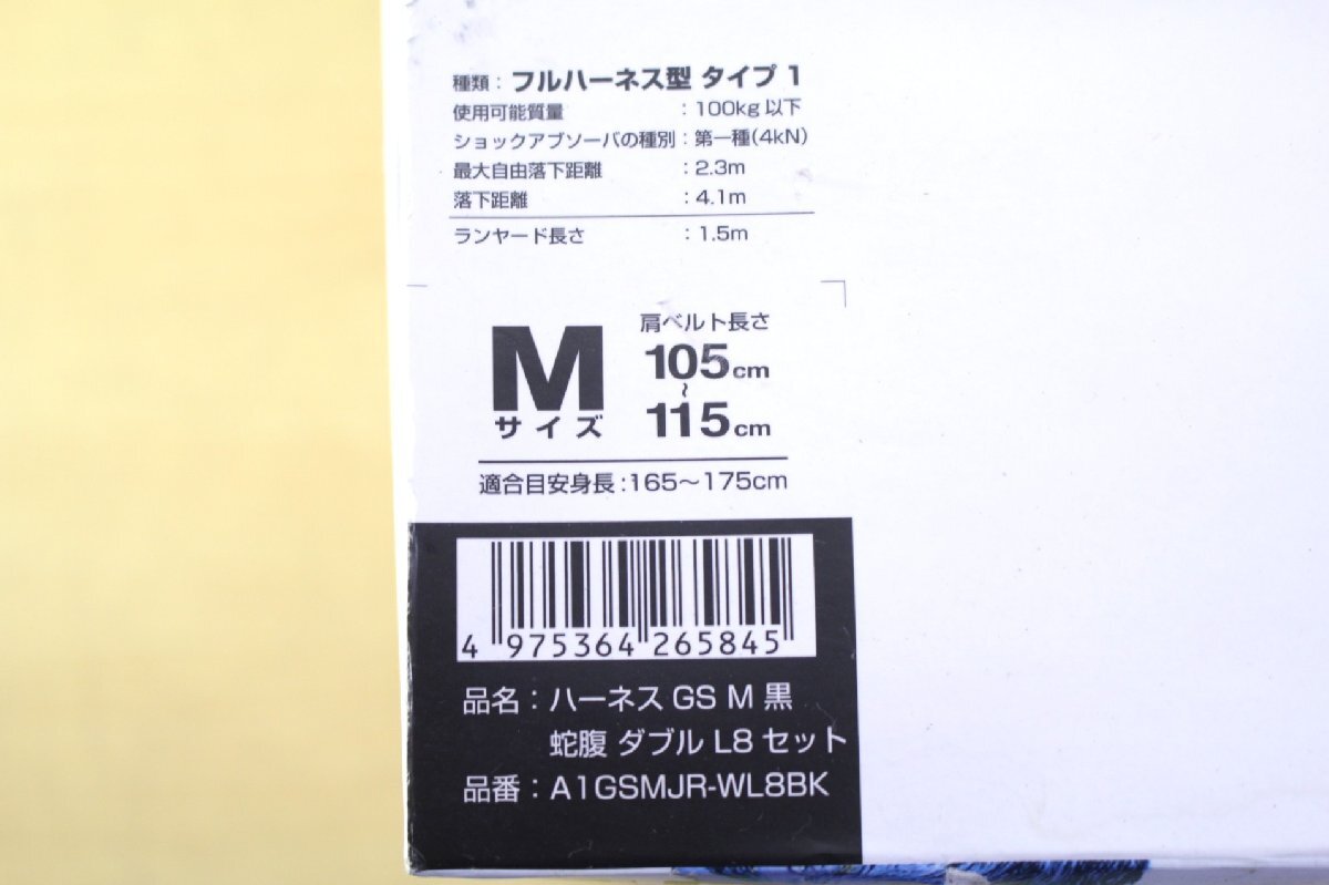 ●【未使用】TAJIMA/タジマ A1GSMJR-WL8BK ハーネス GS M 黒 蛇腹 ダブル L8 セット フルハーネス型 新規格 安全帯 滑落防止【11064288】