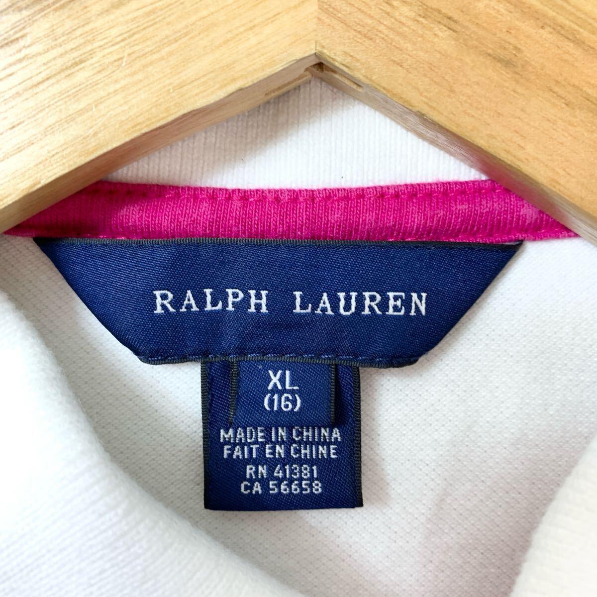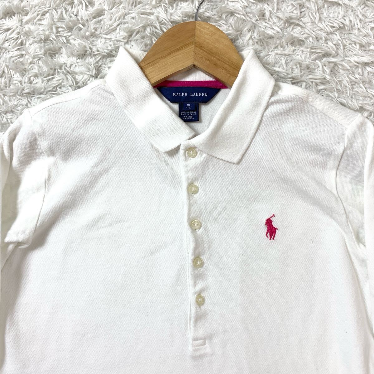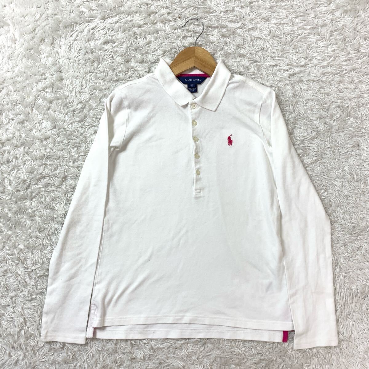 RALPH LAUREN ラルフローレン 長袖ポロシャツ ホワイトピンク XL YA9672