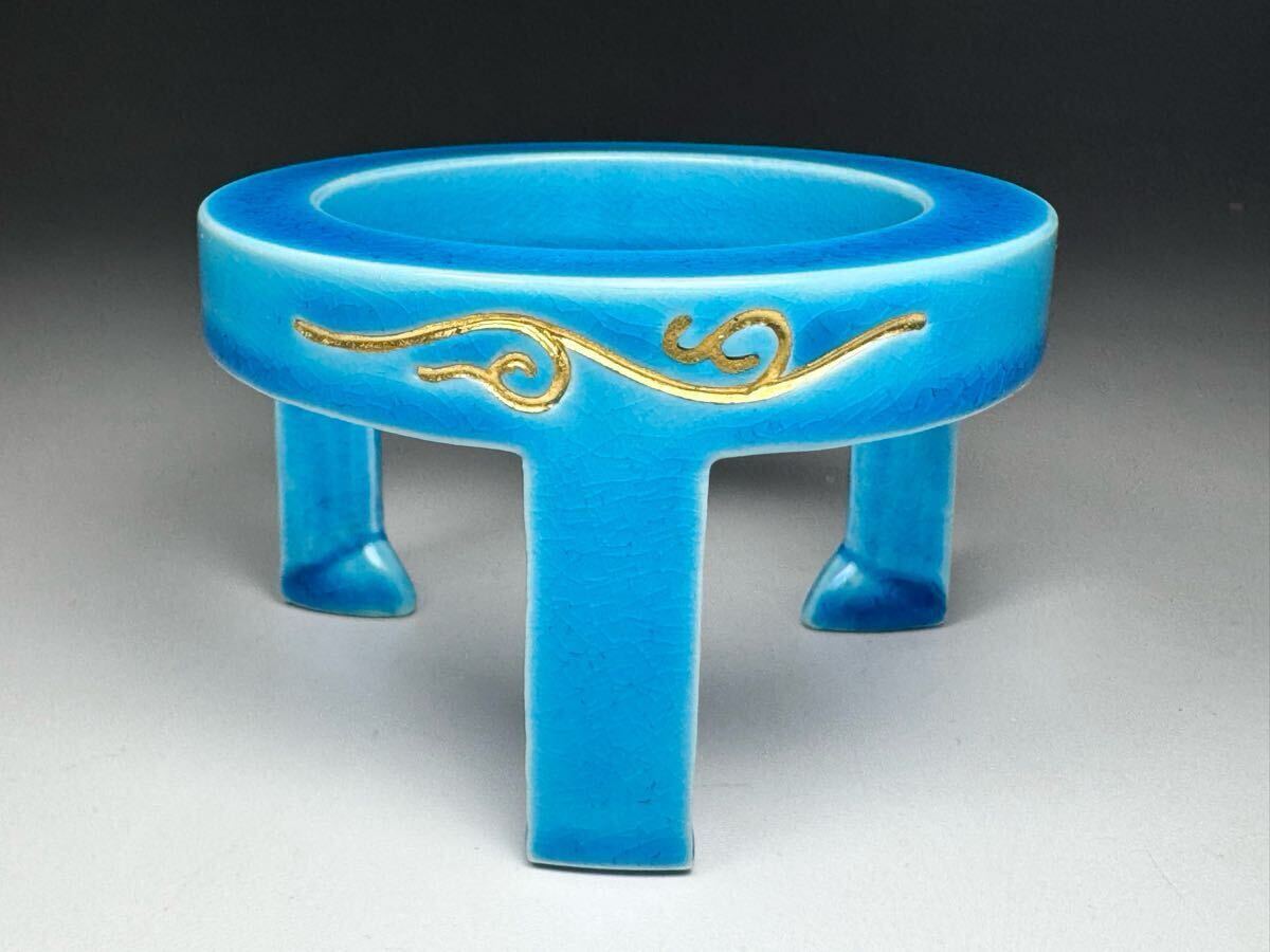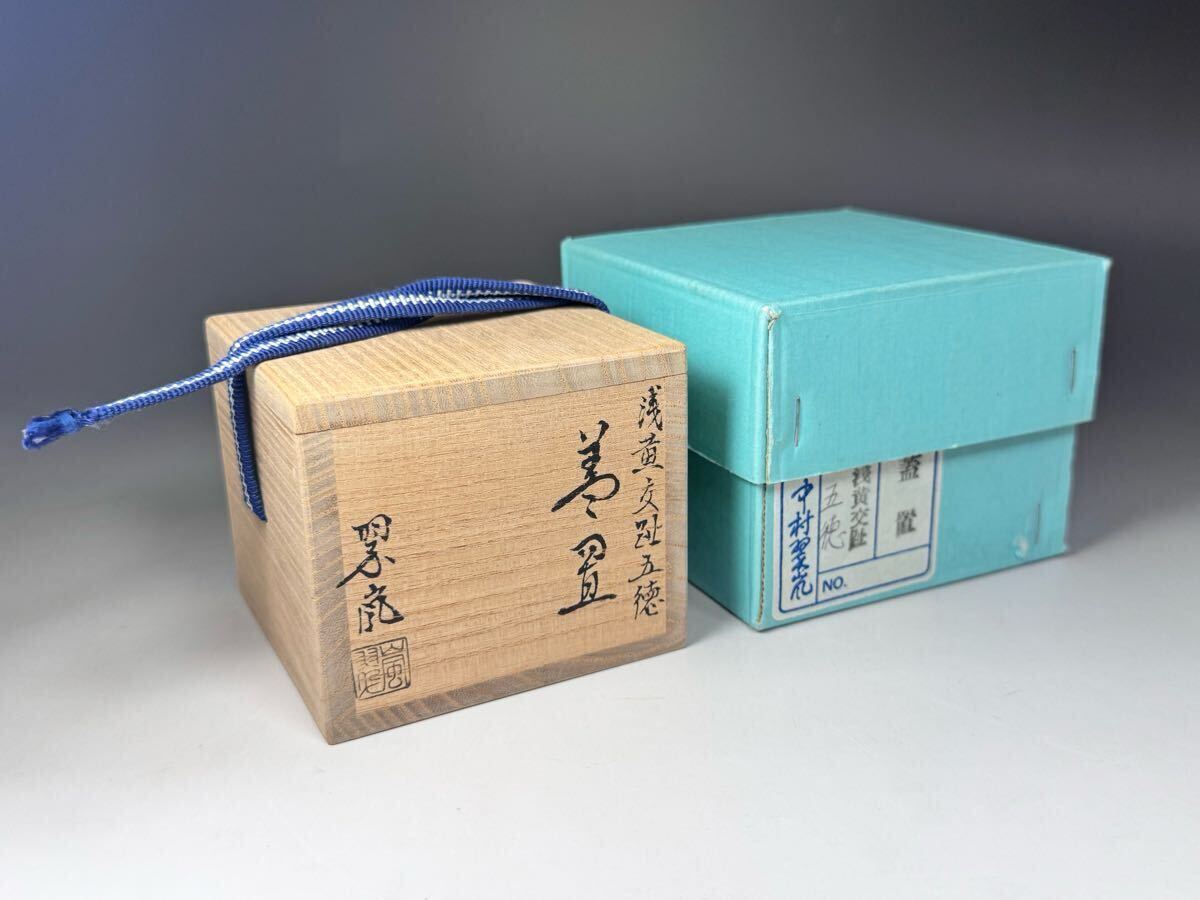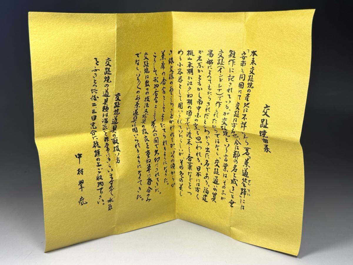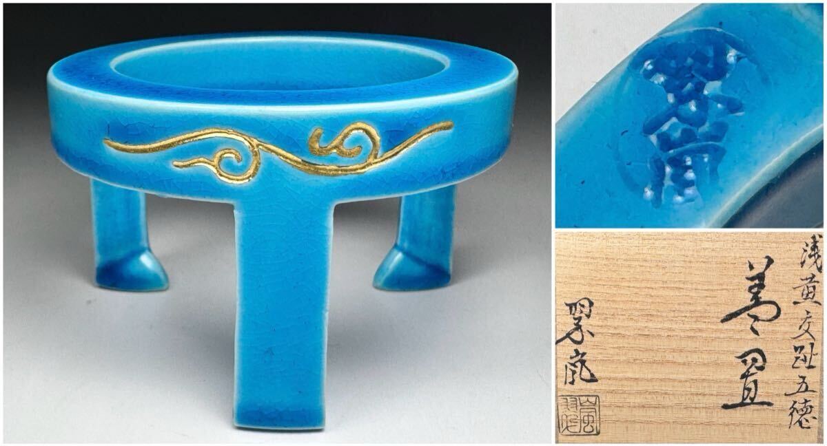 中村翠嵐 造 浅黄交趾五徳 蓋置 茶道具 共箱 共布 紙箱 栞 浅黄 交趾 五徳 交趾焼