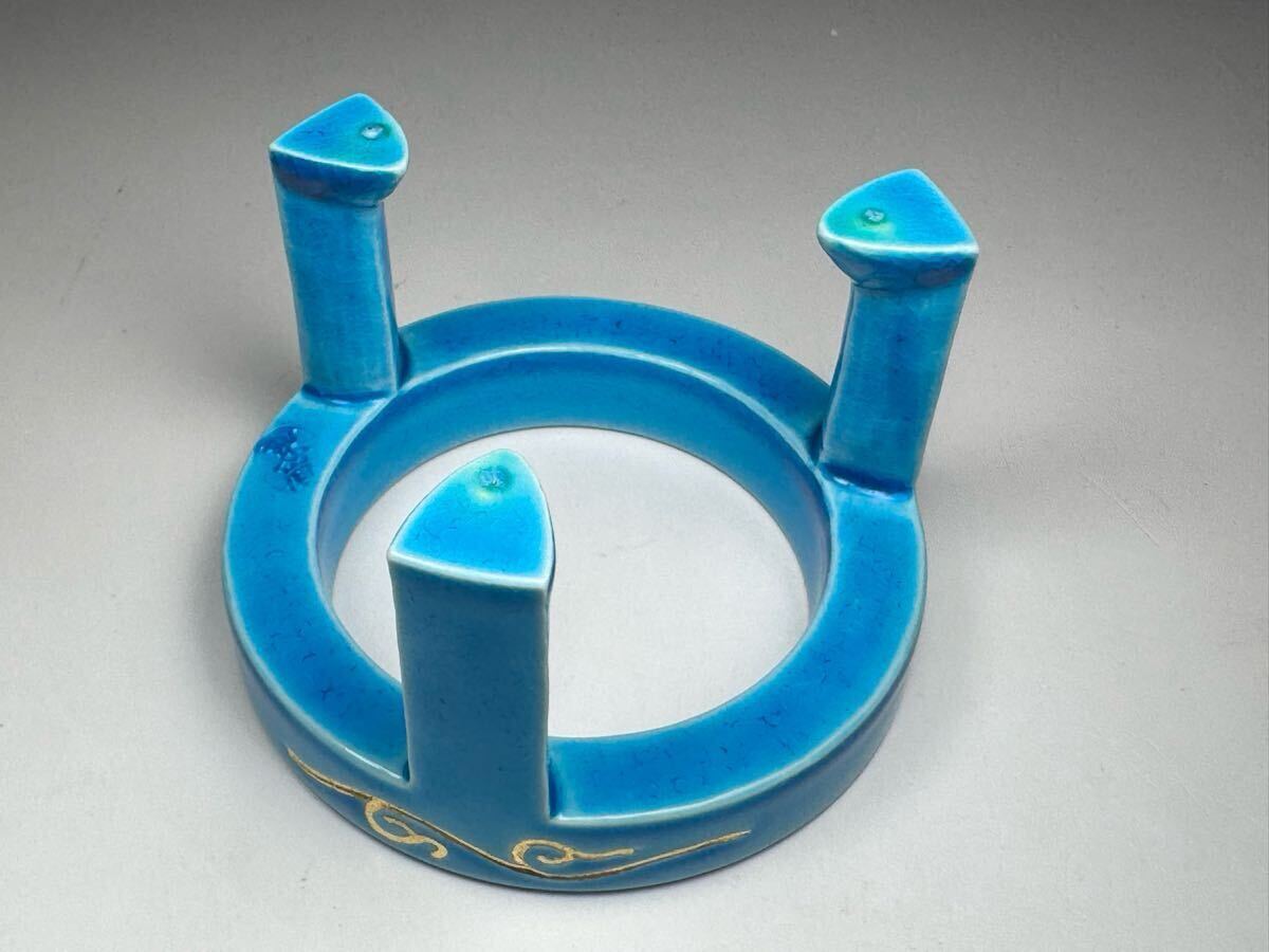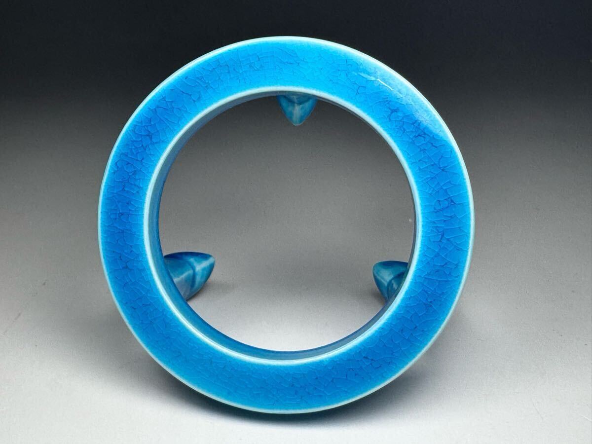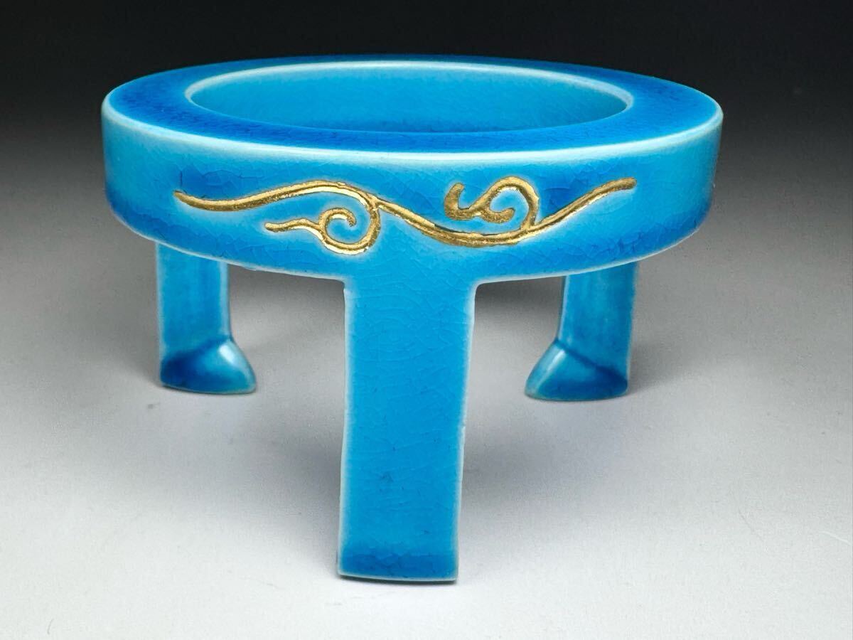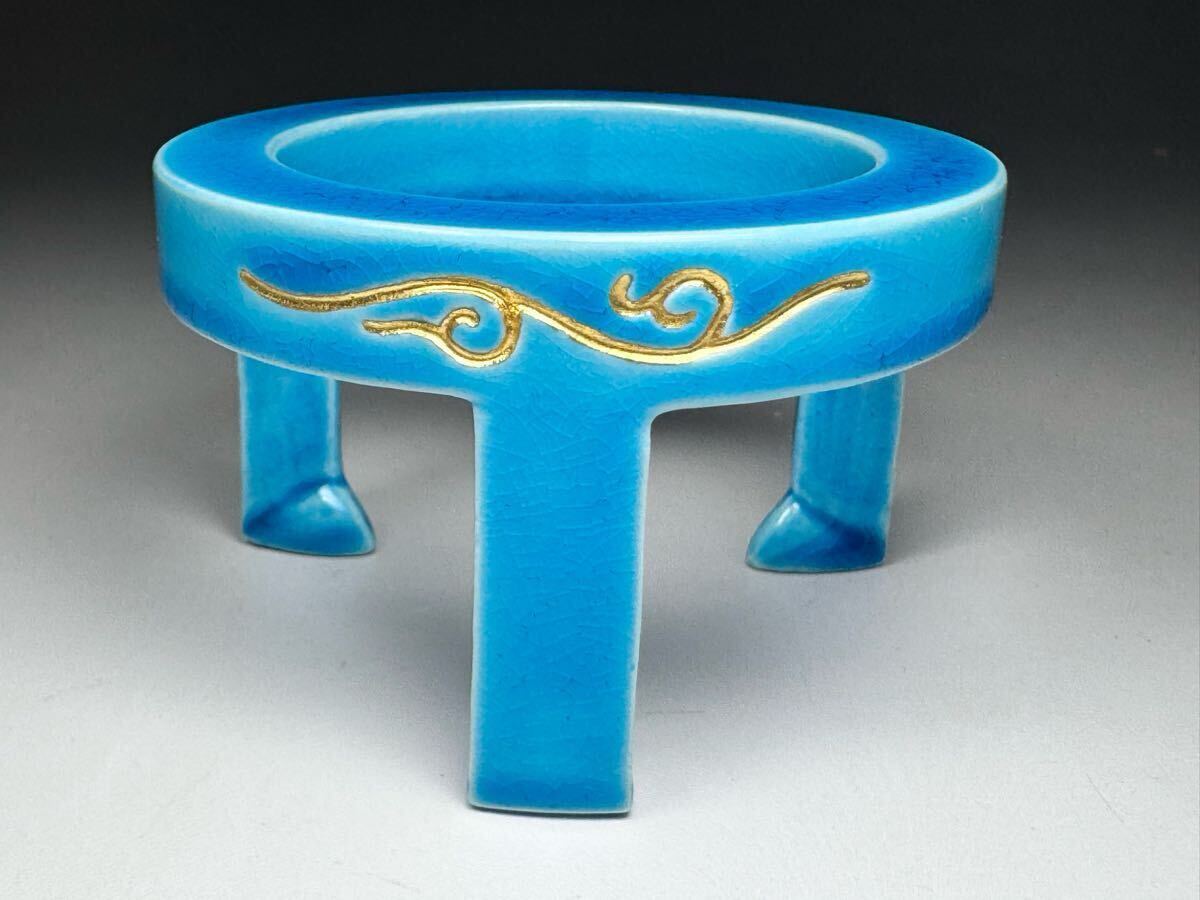 中村翠嵐 造 浅黄交趾五徳 蓋置 茶道具 共箱 共布 紙箱 栞 浅黄 交趾 五徳 交趾焼