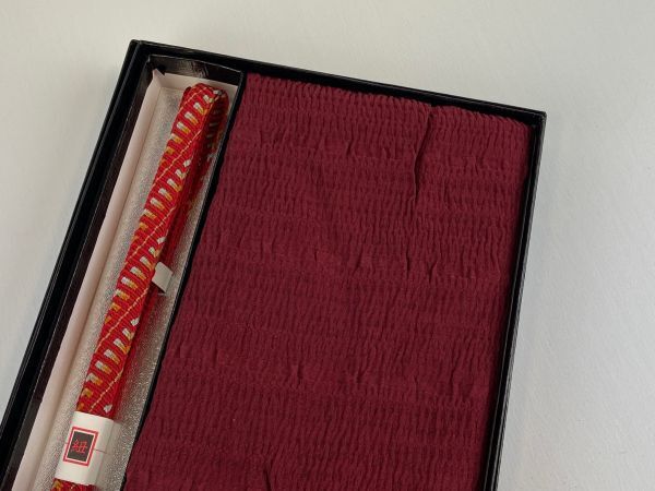 高級帯揚げ   海老色系 膨ら織り   約160~170cm