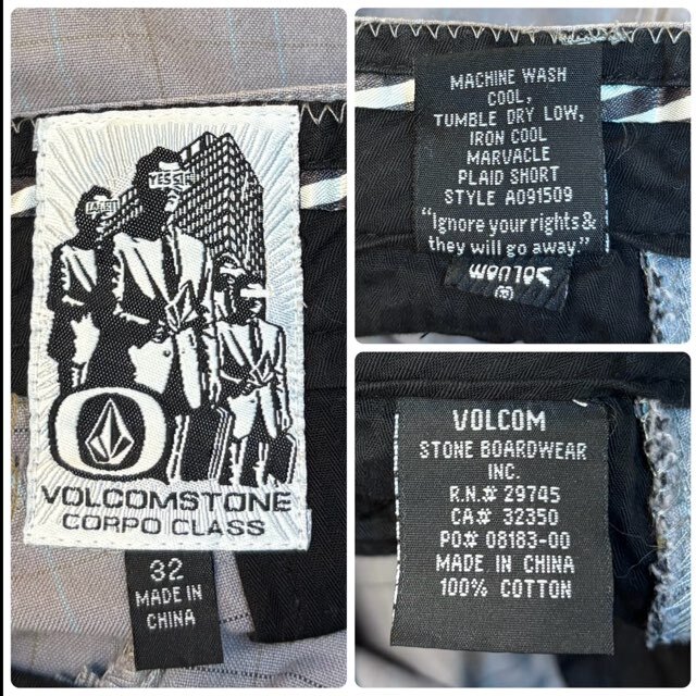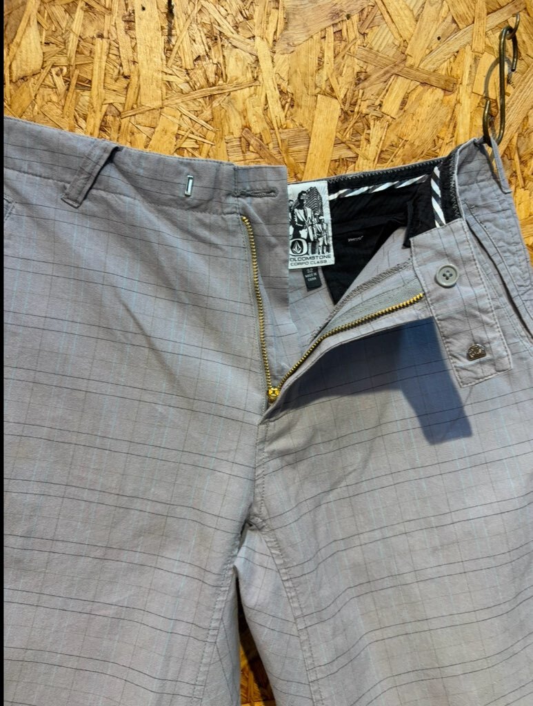 P メンズ パンツ VOLCOM ボルコム チノパン グレー チェック ショート ハーフ ストリート 古着 FF480 / W32 全国一律レターパック配送