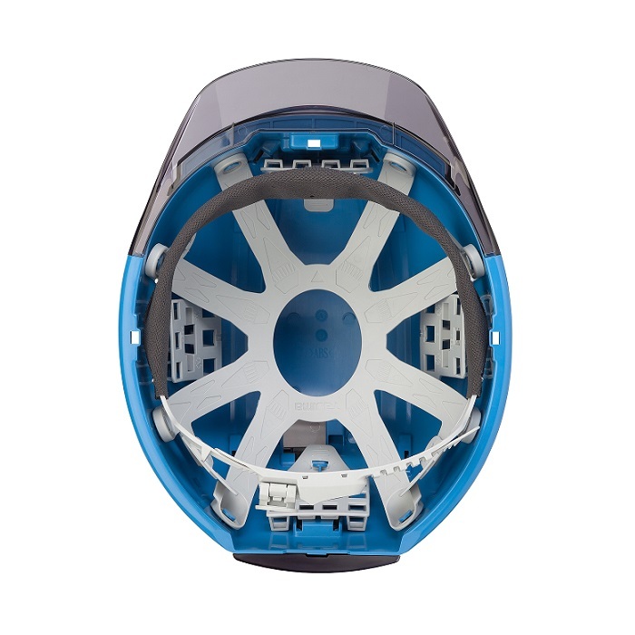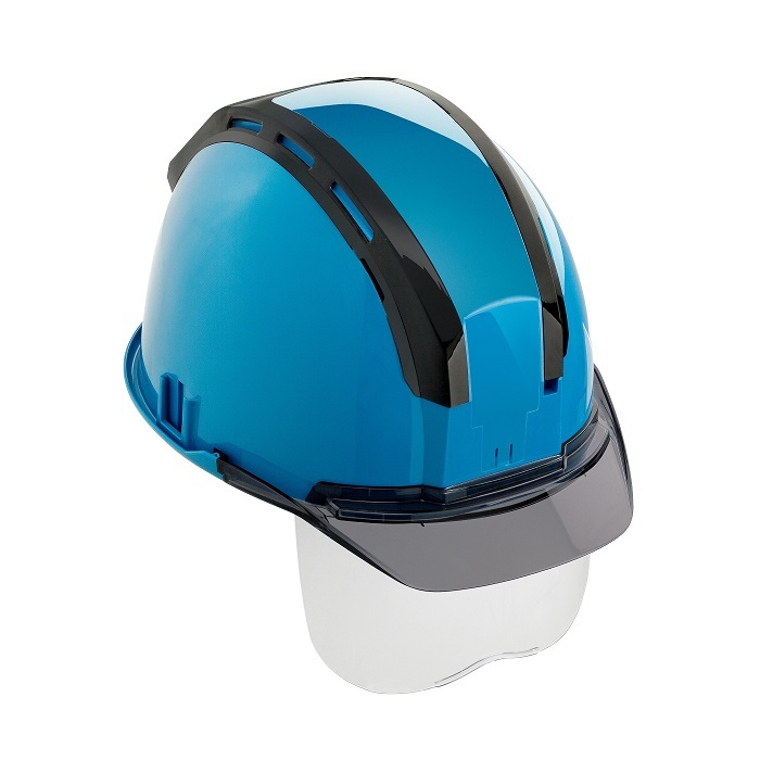 タジマ(TJMデザイン)製のセフメット(ヘルメット) ブル- スモ-ク シールド付の HSBLCSSBです。