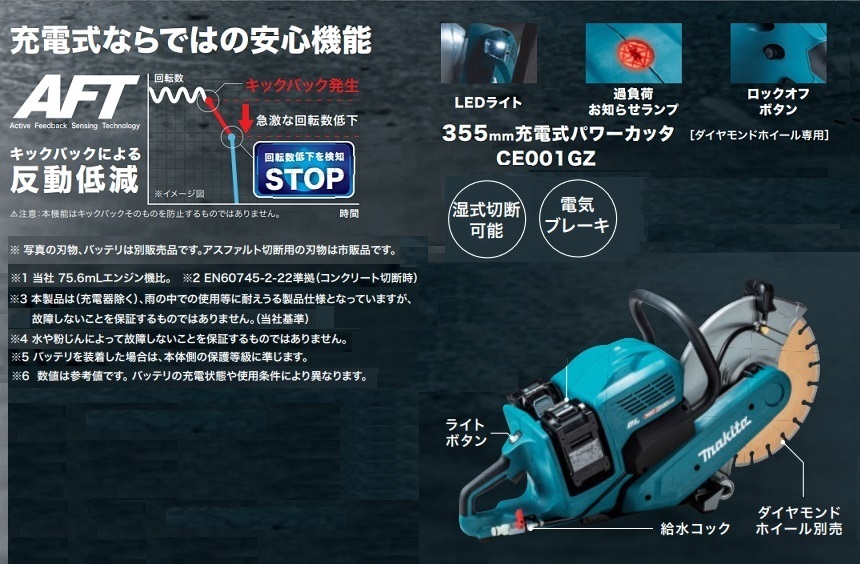 AFT:キックバック発生による急激な回転数低下を検知して自動停止。