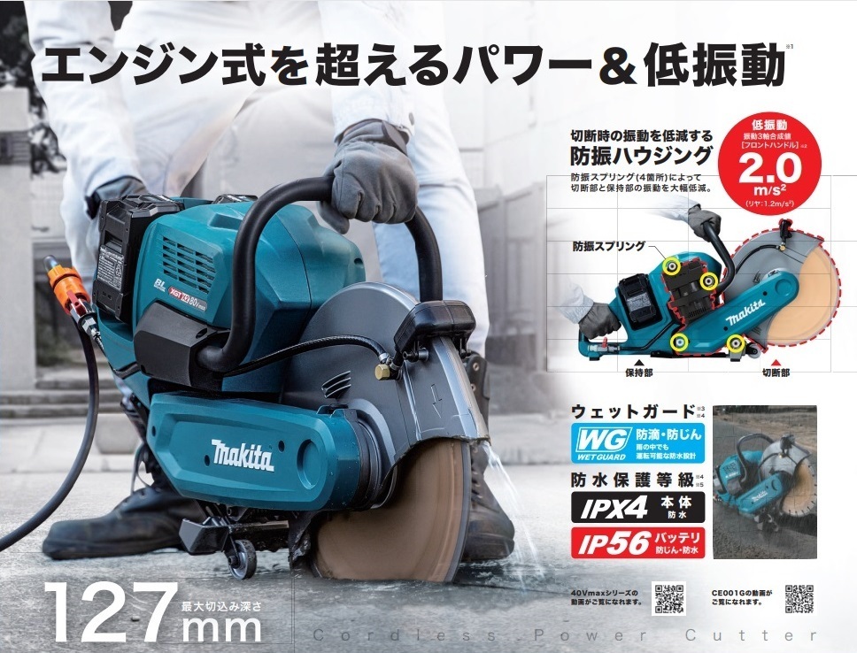 マキタ製の80Vmax(40Vmax X2本)355mm充電式パワ-カッタのCE001GZN(本体のみ)と