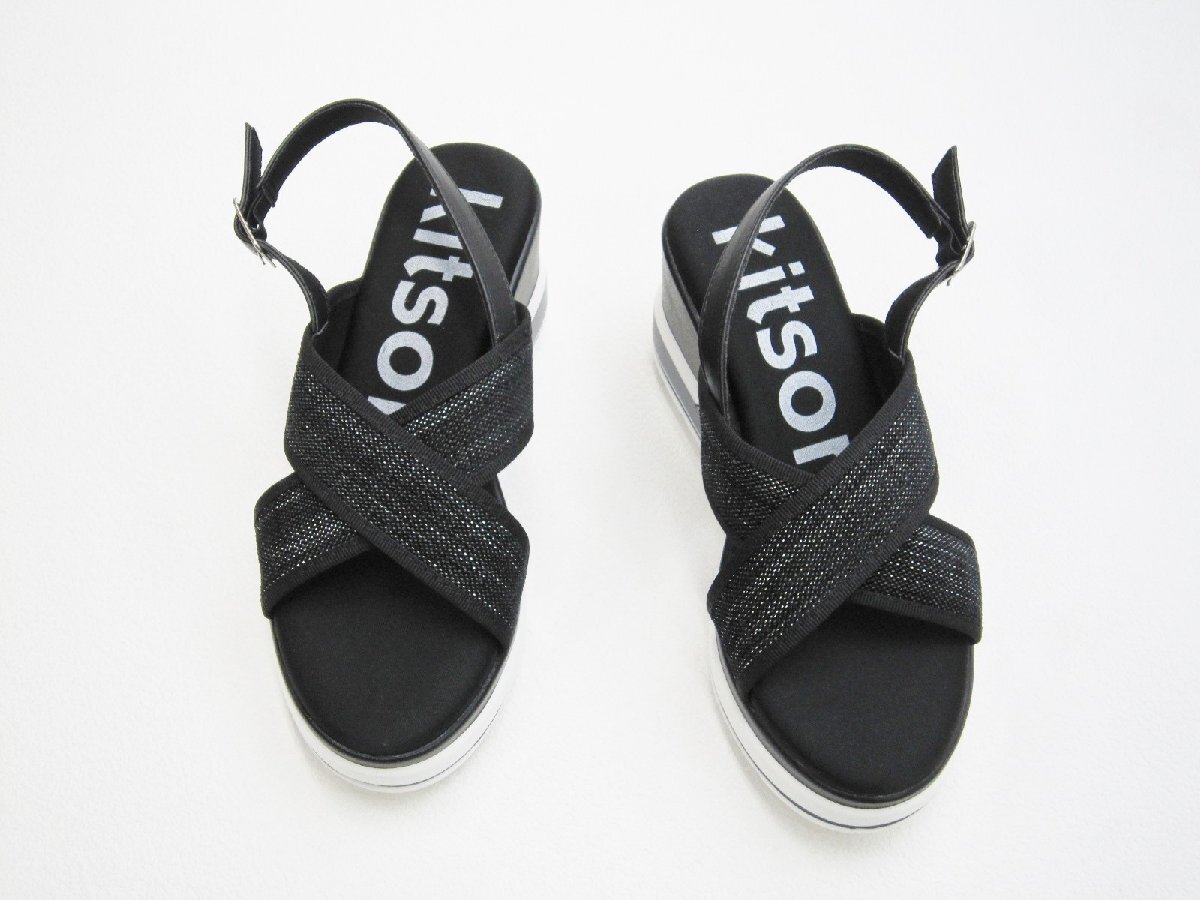 ♪♪♪ 商品の詳細案内 ♪♪♪ | ★kitoson キットソン 軽量 クロスベルト 厚底 ウェッジヒール 足長美脚効果【婦人 レディース】Laサンダル 黒 23.5cm/M 2ク |