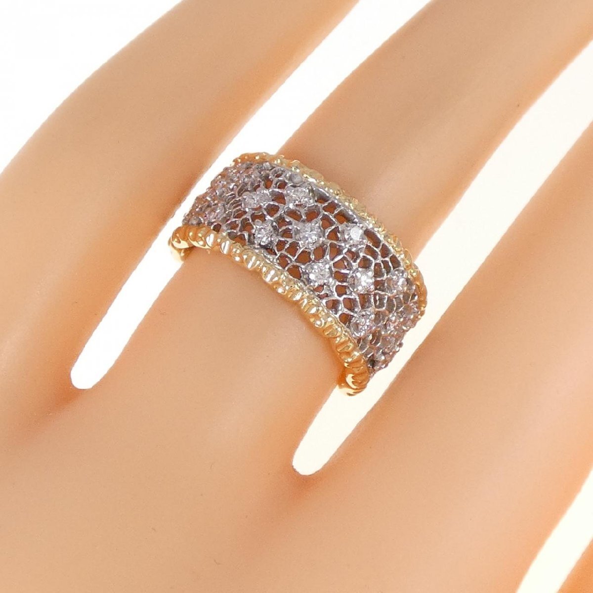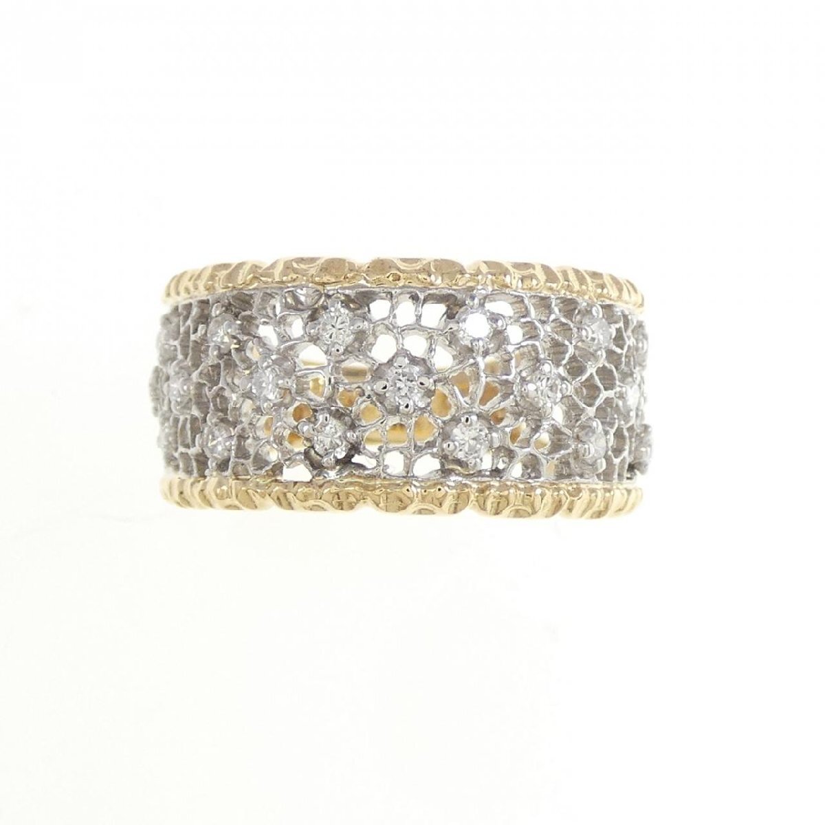 レースのようなデザインにダイヤモンドが煌めく上品なリング。他の人とは違う、あなたらしさを表現できます。