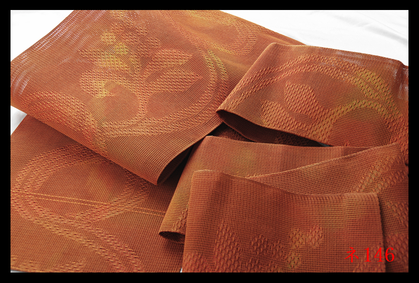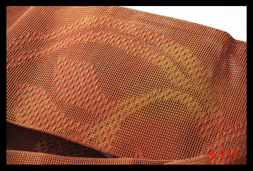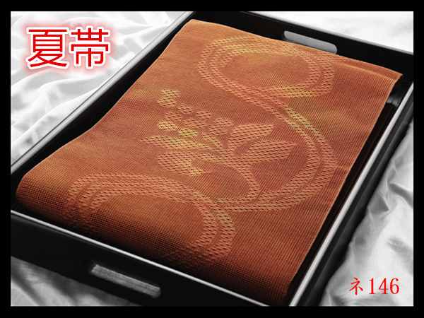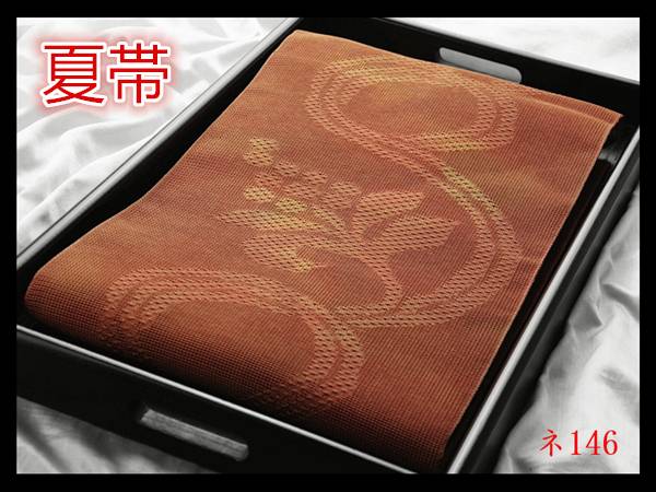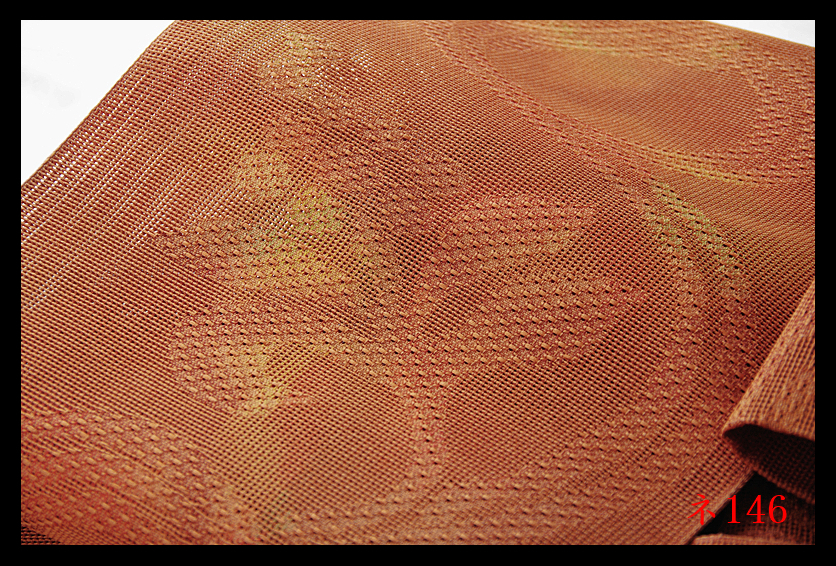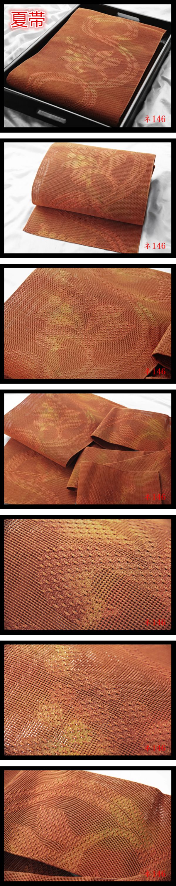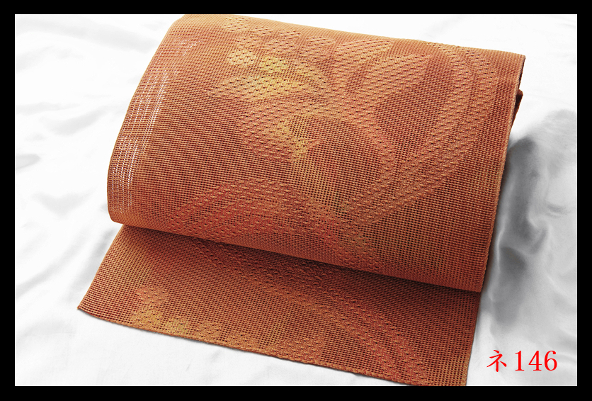 【ネ146】厳選逸品 夏帯 紗 唐草花紋 赤朽葉色地 透かし 気品豊かに 高級美術名古屋帯 ◇検◇簪着物袋帯名古屋帯帯締め