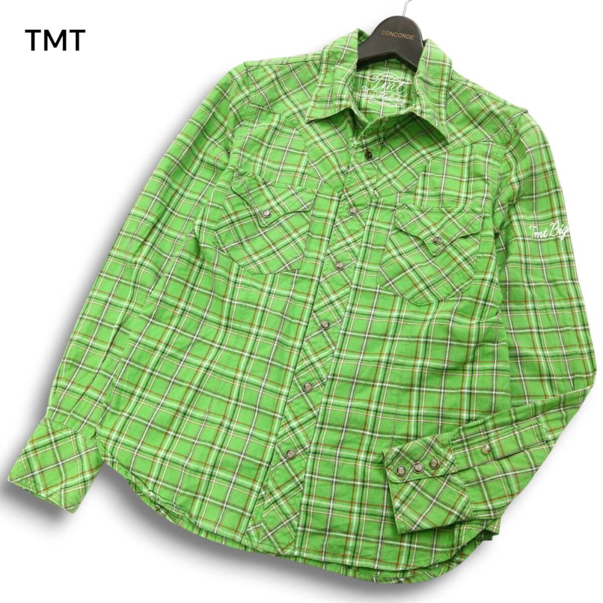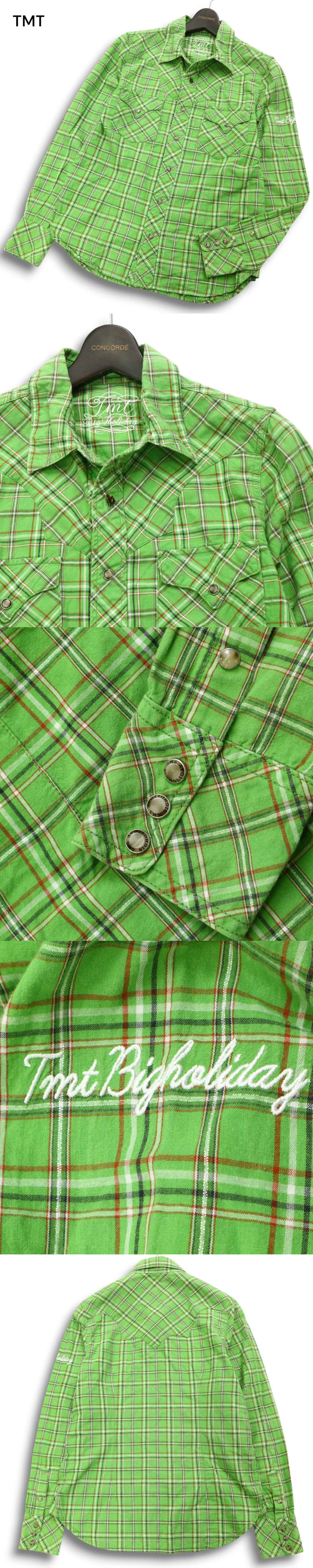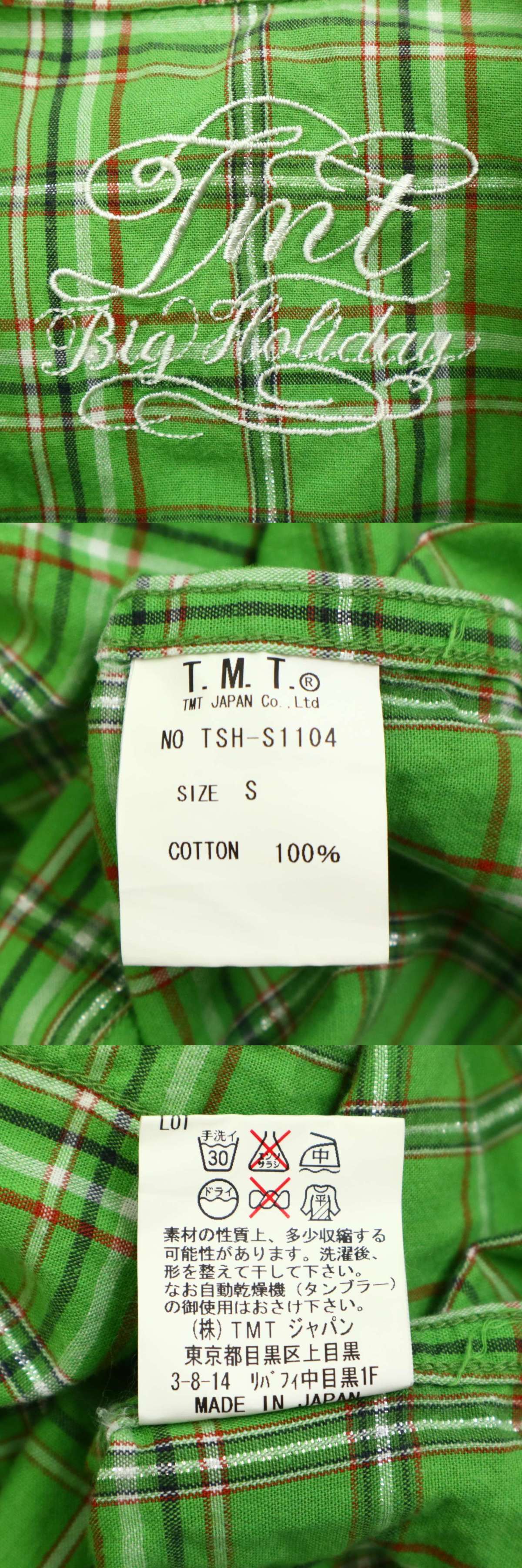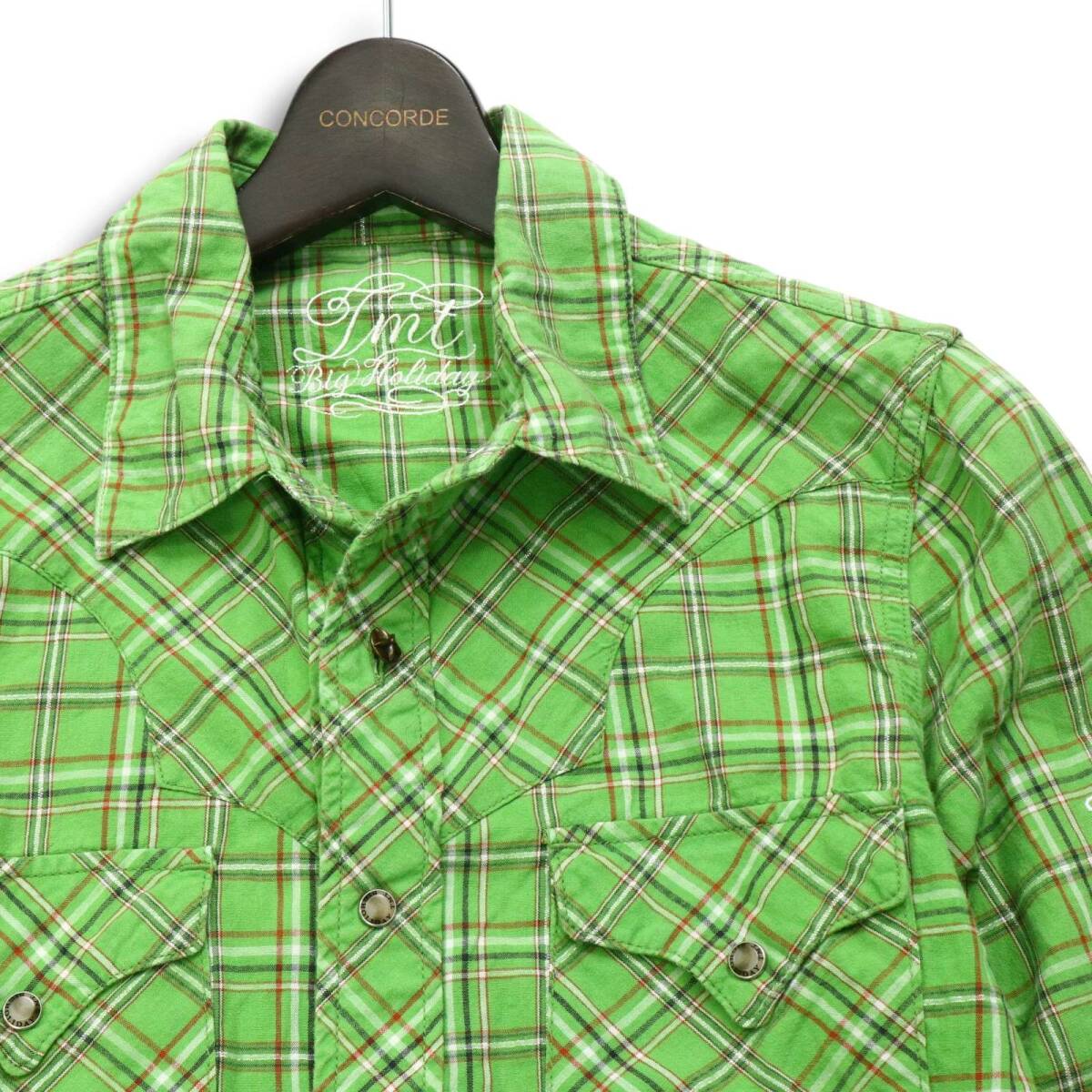 TMT ティーエムティー ビッグホリデー TSH-S1104 通年 ロゴ刺繍★ 長袖 ウエスタン チェック シャツ Sz.S メンズ 日本製 緑