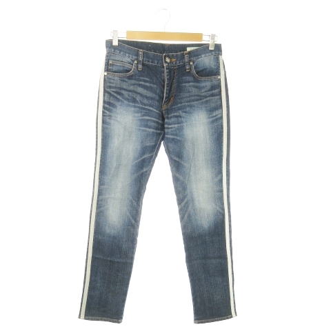 ダブルスタンダードクロージング ダブスタ デニムパンツ ジーンズ テーパード ストレッチ サイドライン ベロア ウォッシュ加工 36 S 紺