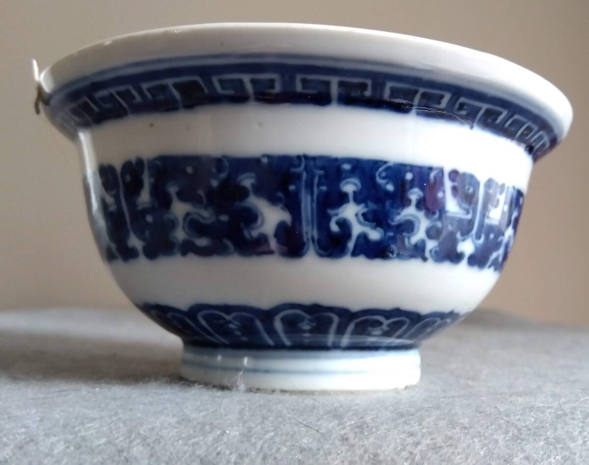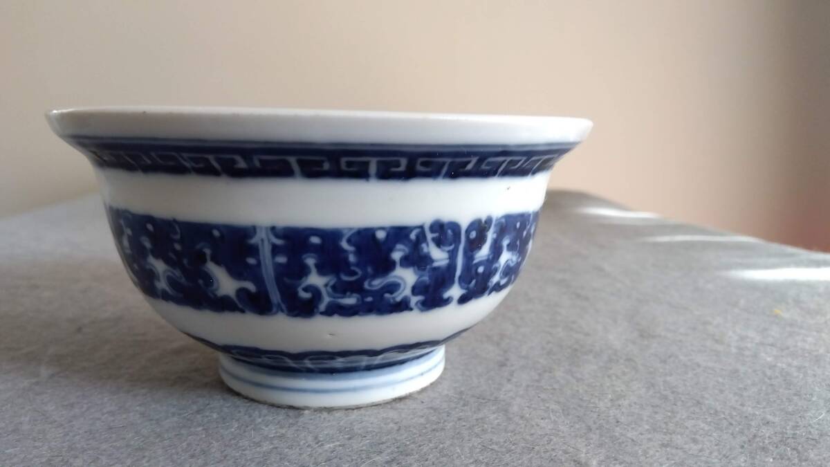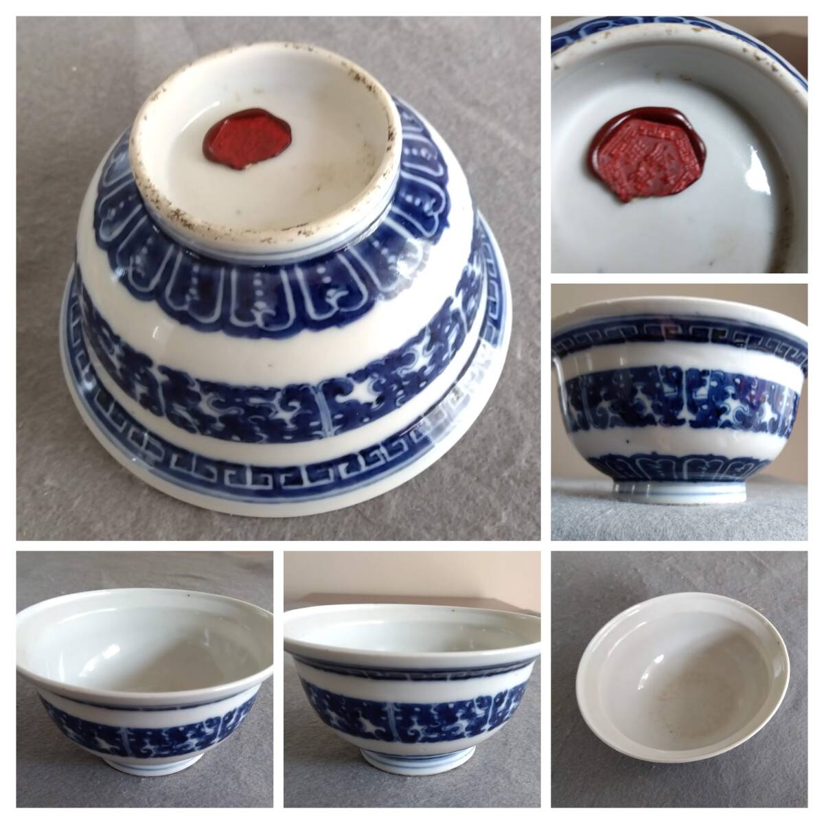 中國古陶磁器 清朝年製 青花鉢 宣徳窯30数年昔景徳鎮を訪れた時工芸品古物商店で 器見込み部及び腰胴全体に彩る見事な青花紋様釉美を気に入り買い求めたお逸品です。 画像参照でご理解頂ける様に中國国家工芸局総公司の本物保証の印が高台底にふされています。 清朝以前の品物売買は国が禁止しているとの店主の説明で 本物である安心感をもって買い求めたものです。 当時は化粧箱もなく新聞紙に雑に包まれ持ち帰ったことが懐かしく思い出されます。サイズ:玉縁口縁2mm口径120mm見込み45mm全高60mm口台径55mm高台底高X幅X深10X2X10mm包装:クラフトボックスプチプチ包装