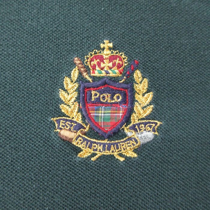 【商品名】 XL★古着 ラルフローレン ポロゴルフ 長袖 ブランド Tシャツ メンズ 90年代 90s ワンポイントロゴ 鹿の子 大きいサイズ ロング丈 コットン タートルネック ハイネック 緑