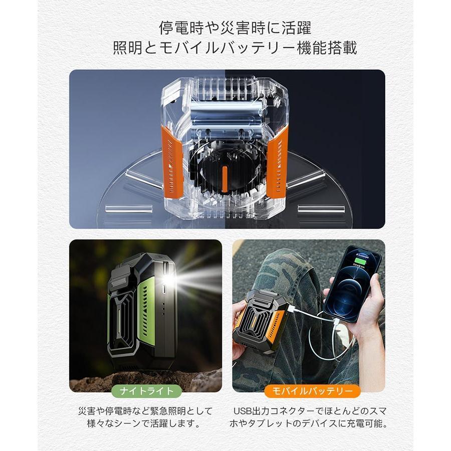 腰掛け扇風機 携帯 ミニ扇風機 小型 腰掛けファン 首掛け LED懐中電灯 ポータブルファン USB充電式 3段階風量 緊急充電 1台4役 耐衝撃