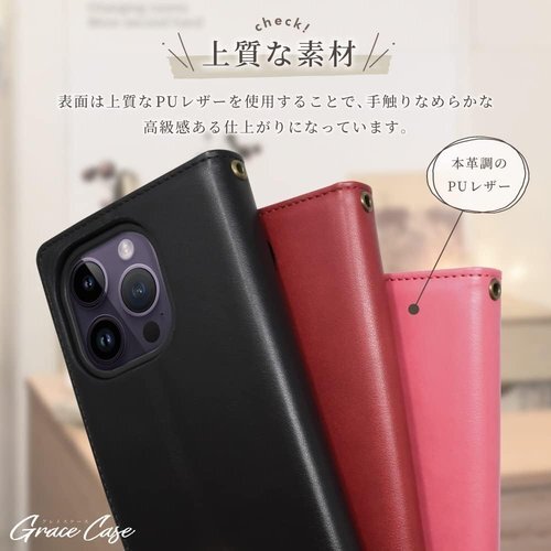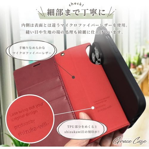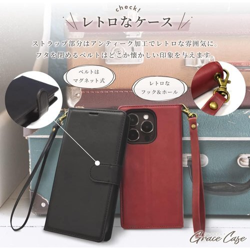 シズカウィル iPhone 15 用 手帳型 ケース カバー グレイスケース ストラップ付き ストラップホール 1個入り カージナルレッド 2256