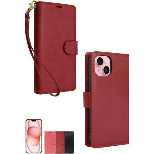 シズカウィル iPhone 15 用 手帳型 ケース ラップ付き ストラップホール 1個入り カージナルレッド 2256