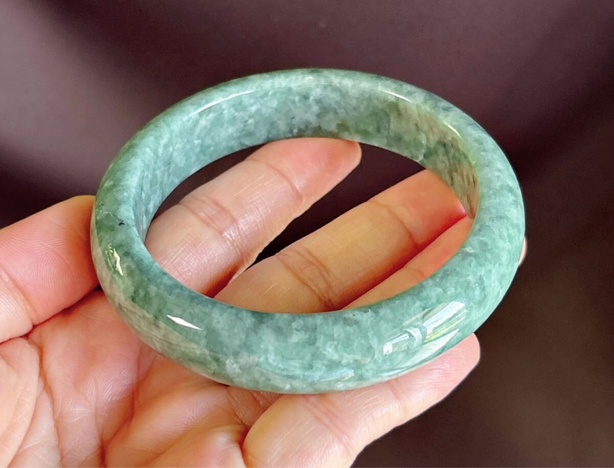 天然石ミャンマー本翡翠 (A)バングルの内径約:57.9mm*幅14.8mm*厚さ8.2mm;