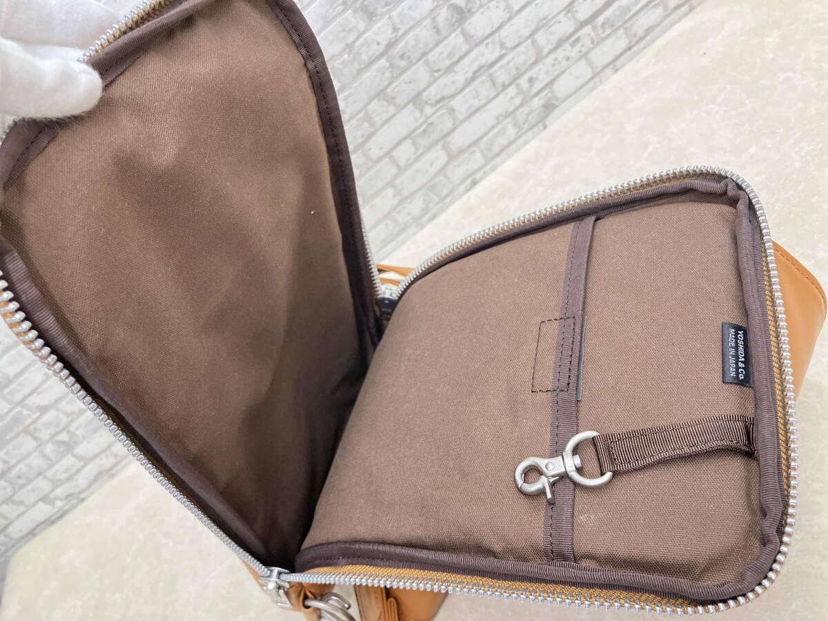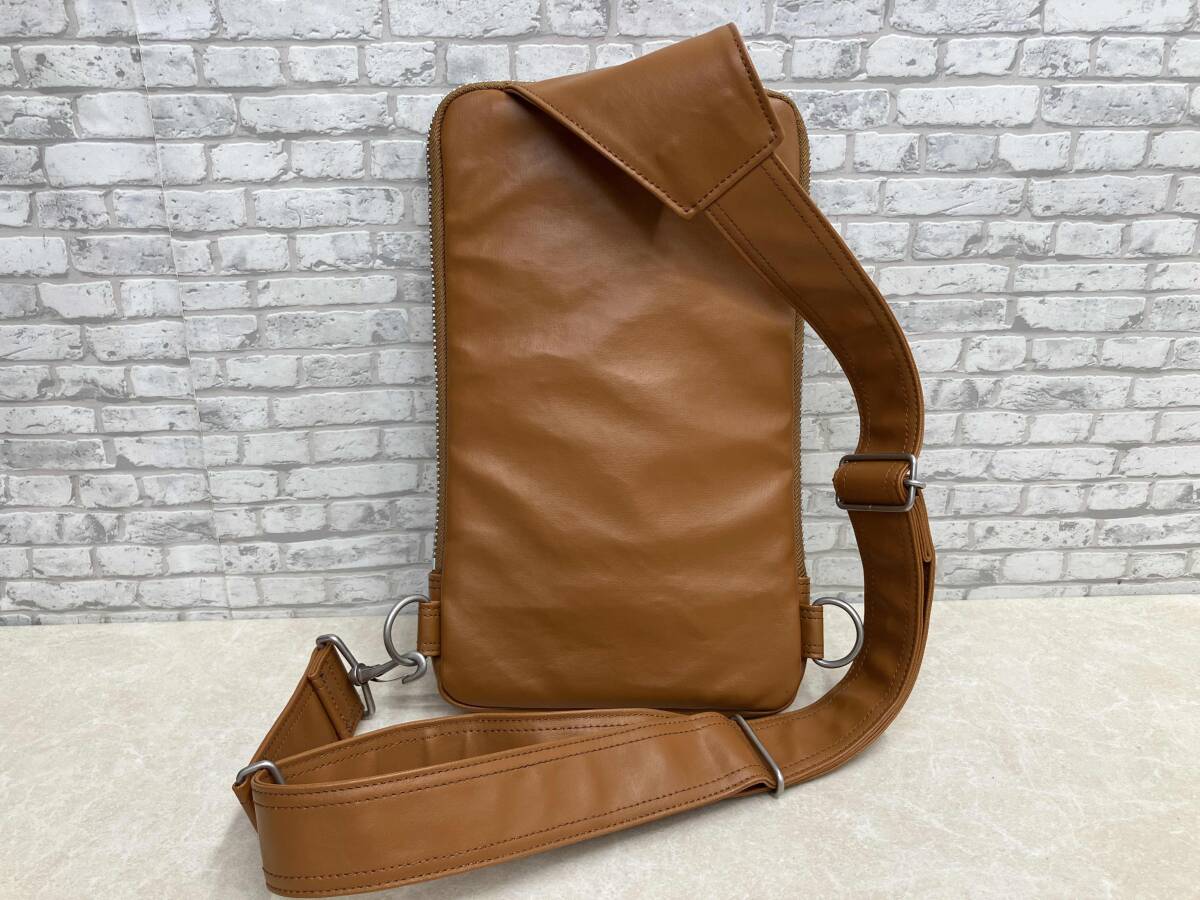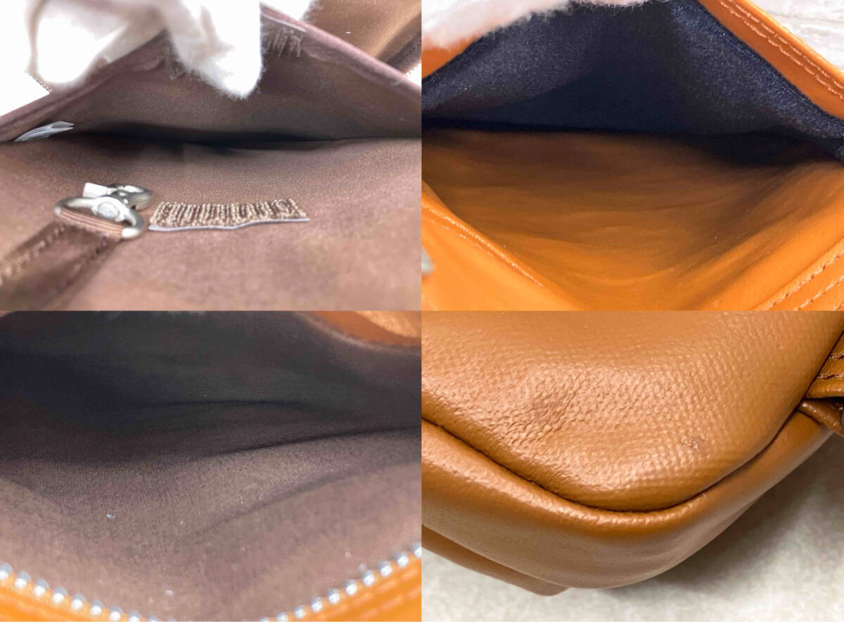 | 正面ブランドロゴ近くにてかりあり 内側ポケット上部に汚れあり ストラップの金属にキズあり |