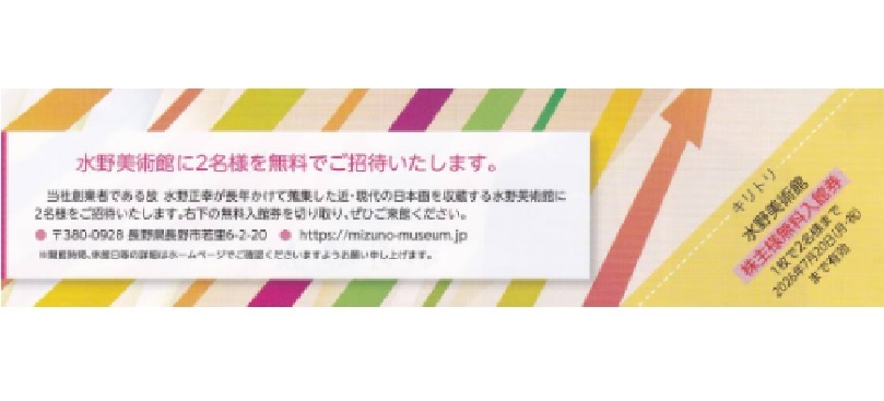 水野美術館 株主優待券 2026/7/20迄 ホクト株主優待 長野