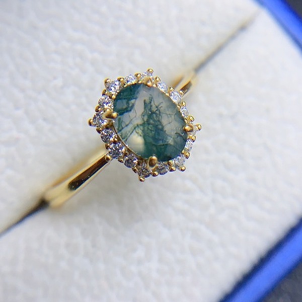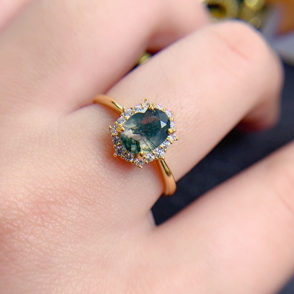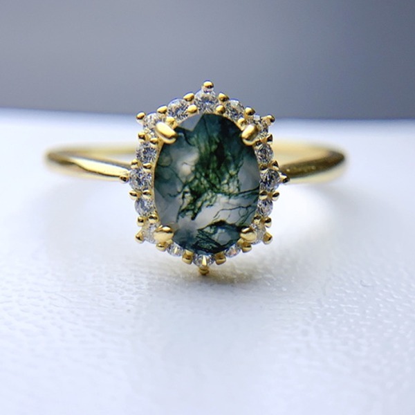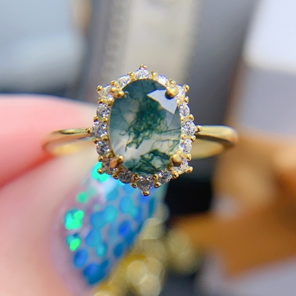 女性用天然苔瑪瑙リング、925スターリングシルバー、天然モス瑪瑙、婚約ギフト