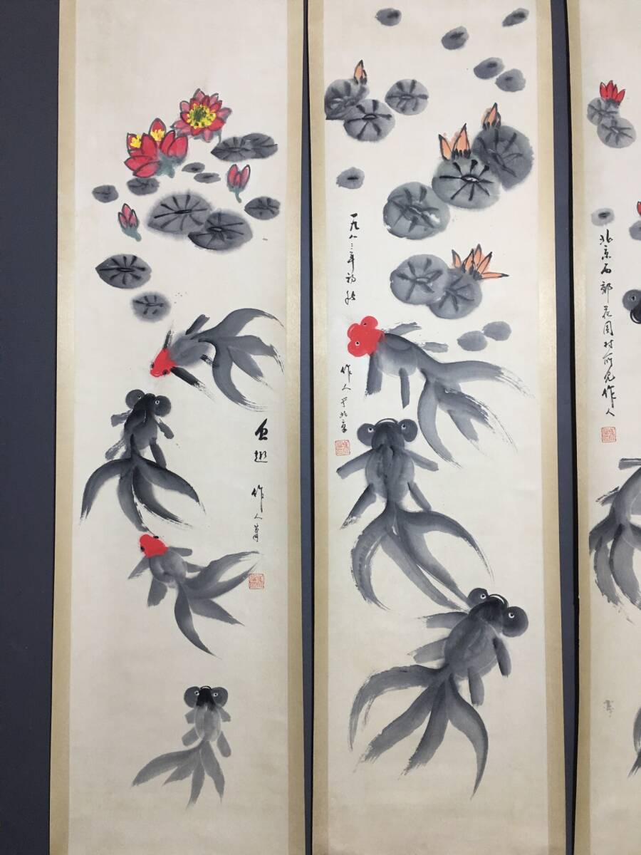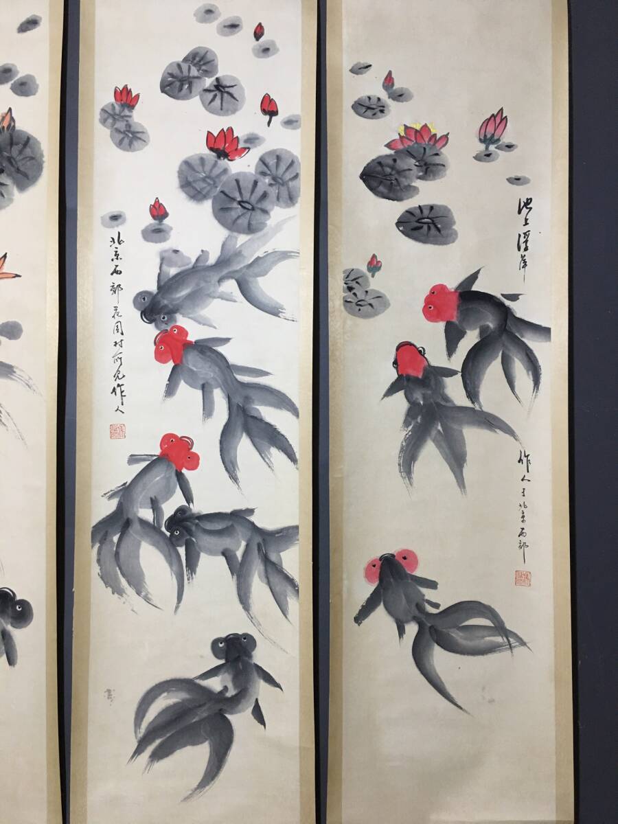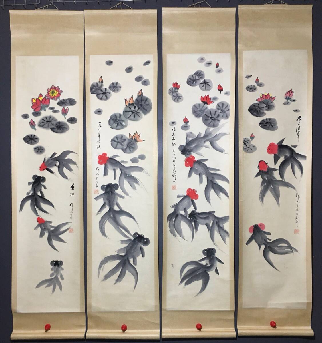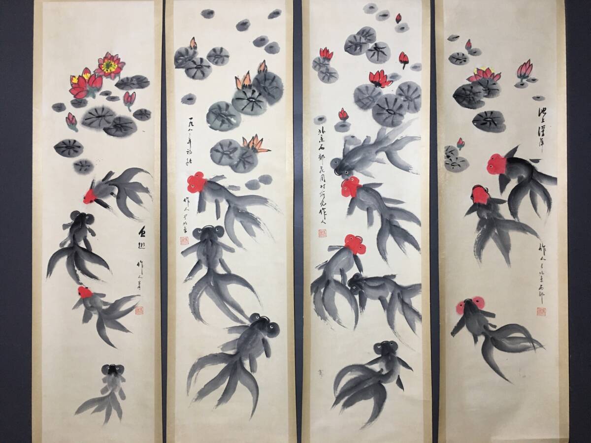 | 【蔵友館蔵品・中国字画・四條屏中堂画・金魚画・肉筆紙本・掛軸・壁掛・立軸】・古董品・中国古玩・時代物・希少珍品・中国時代美術 |