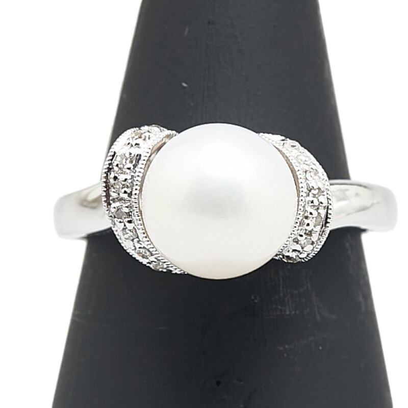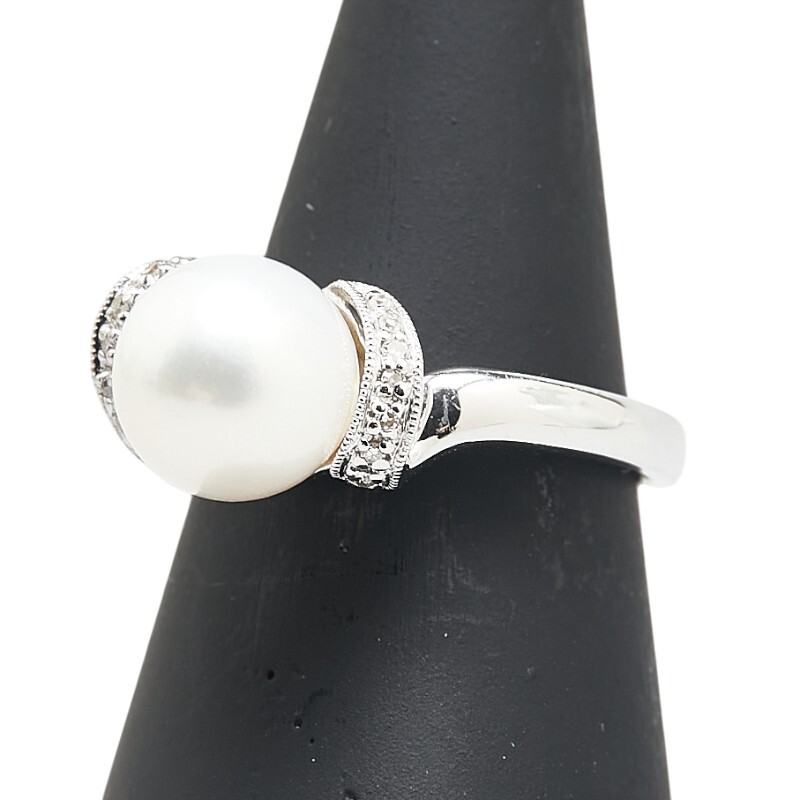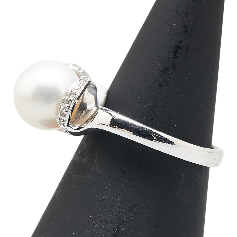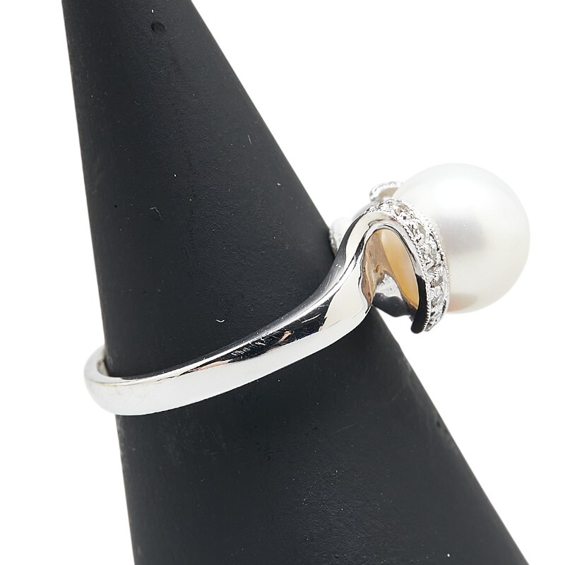 ノーブランド K18WG ホワイトゴールド パール8.7mm ダイヤ0.05ct リング 指輪 レディース no brand 13号 中古