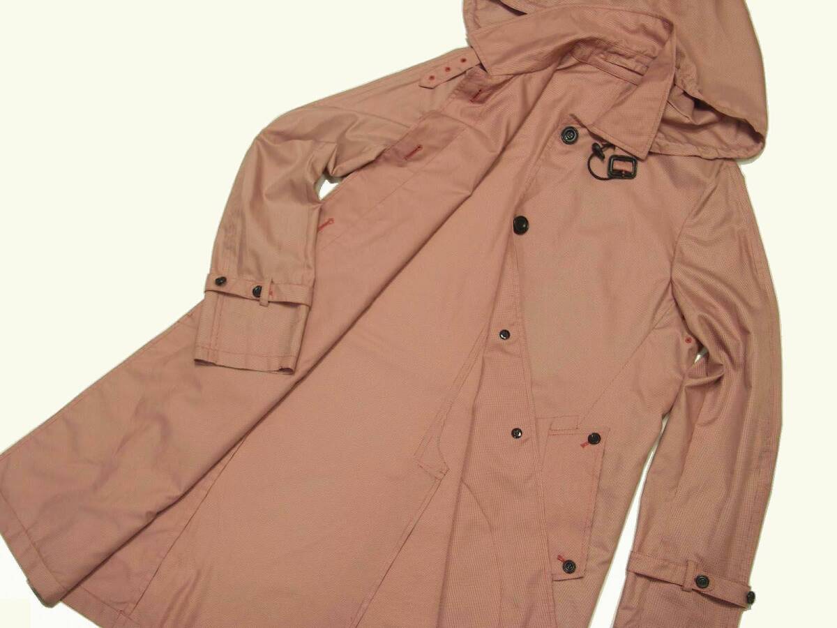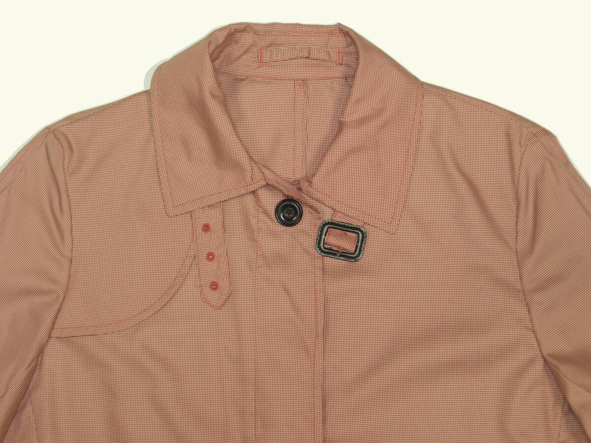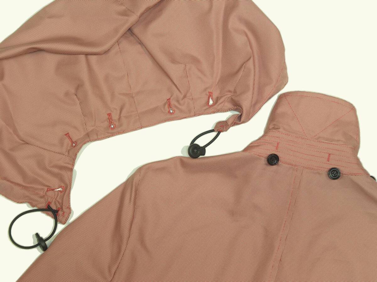 アイテム名: デタッチャブルフード付き バルカラーレインコート [ *AQUAMAC* ] 一体ポウチ収納 *サイズS 国内(M)、 状態: ◎試着のみ 既着用感なし 極美ストック品、 色、柄: c/#アイボリー、#ガーネット/赤、(遠目に c/#オレンジがかったピンク に見える極細千鳥格子(ハウンドトゥース)柄)、